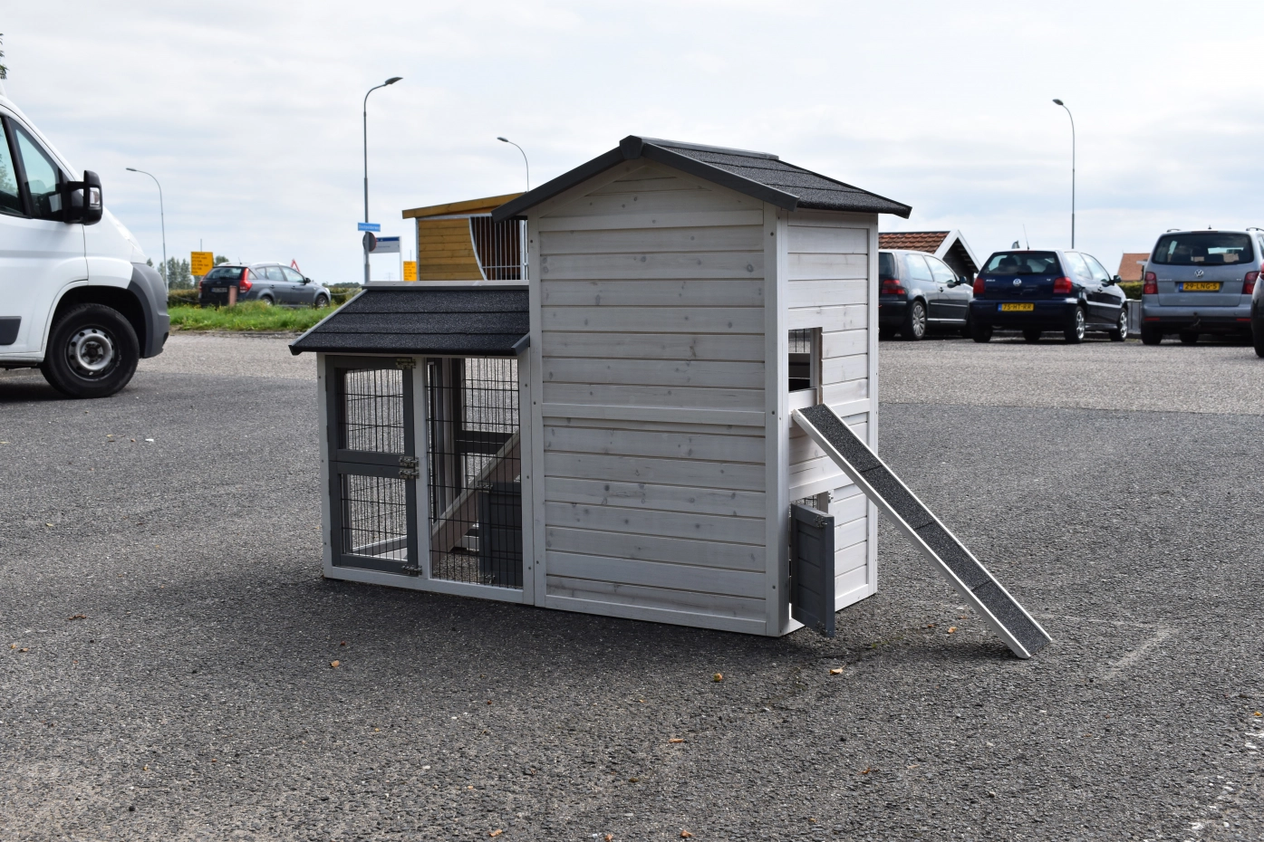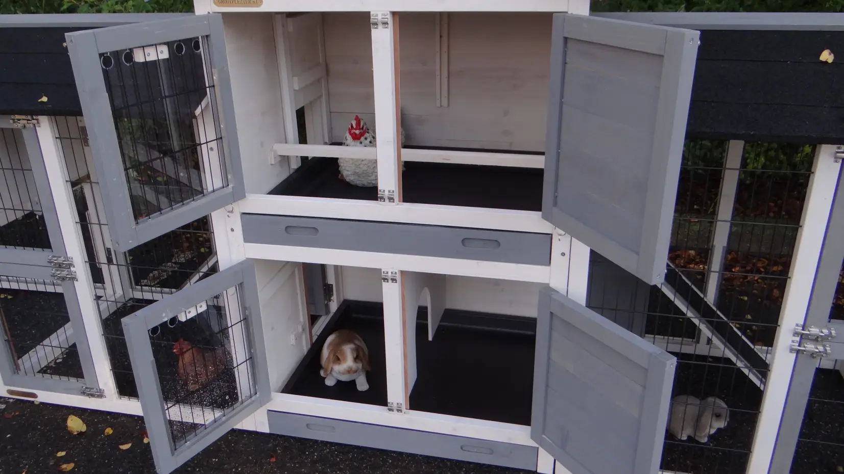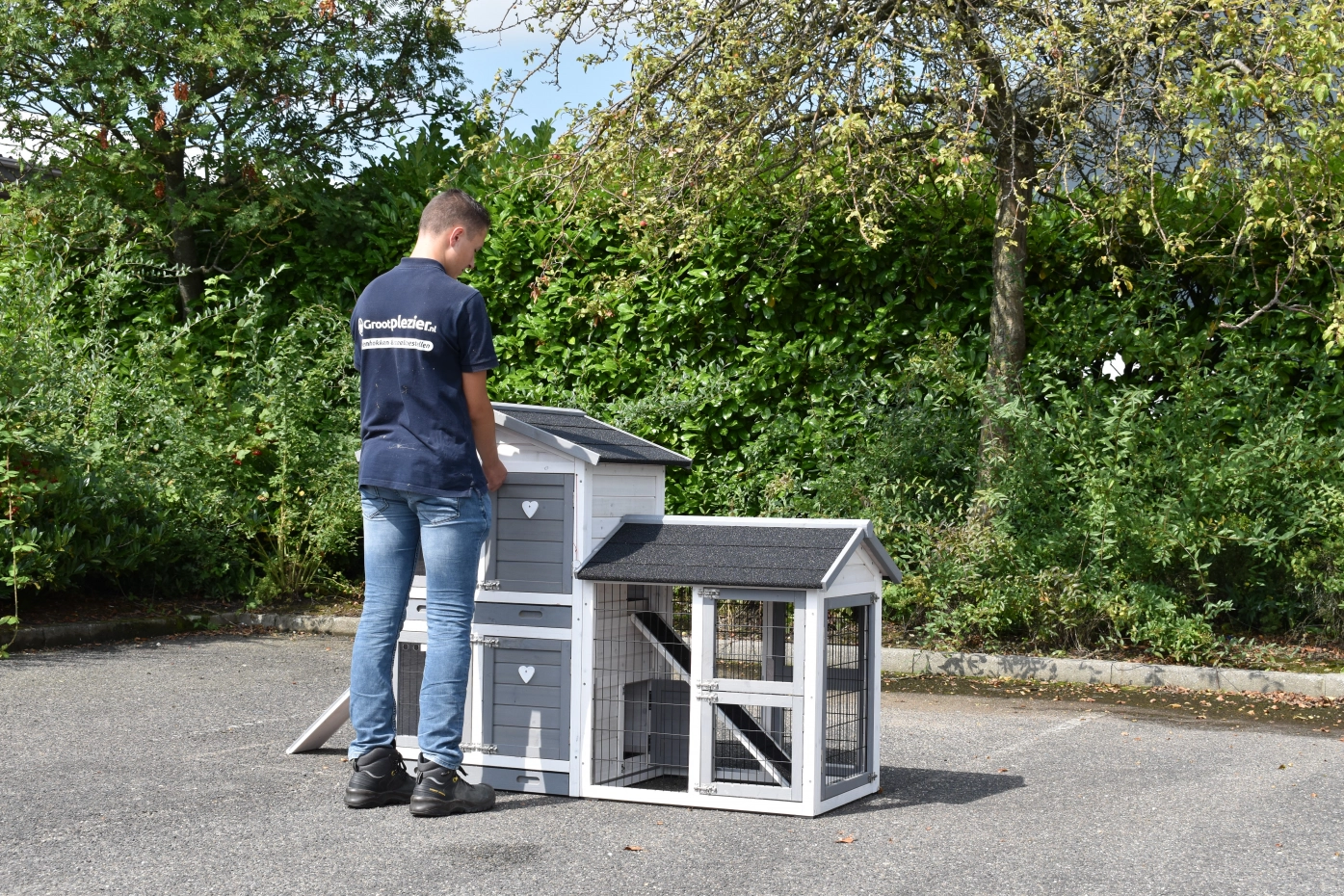 Clapier pour lapin Double Small avec enclos est un magnifique clapier avec de grandes portes anti-rongeurs. Ce clapier pratique dispose de 2 abris de nuit séparées et verrouillables. Avec ce clapier, vous pouvez décider si vos lapins peuvent rester ensemble ou non. 2 panneaux en plexiglas sont inclus pour les portes des abris de nuit.