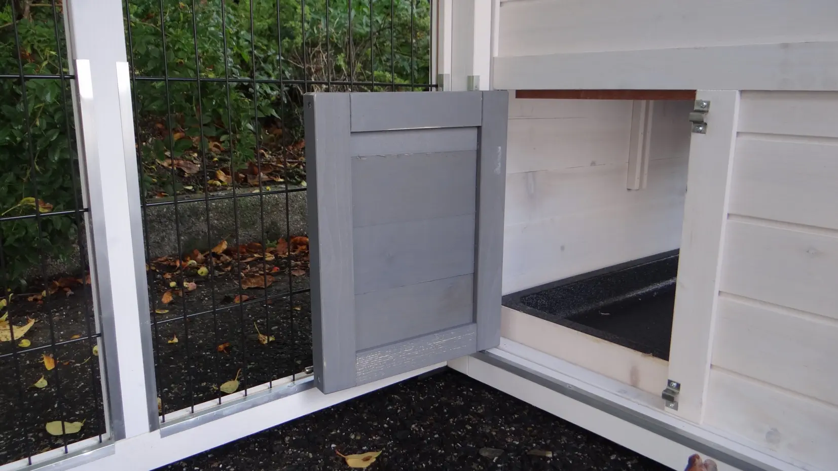 - Aussi un tiroir à fumier rétractable très pratique au bas de ce clapier
