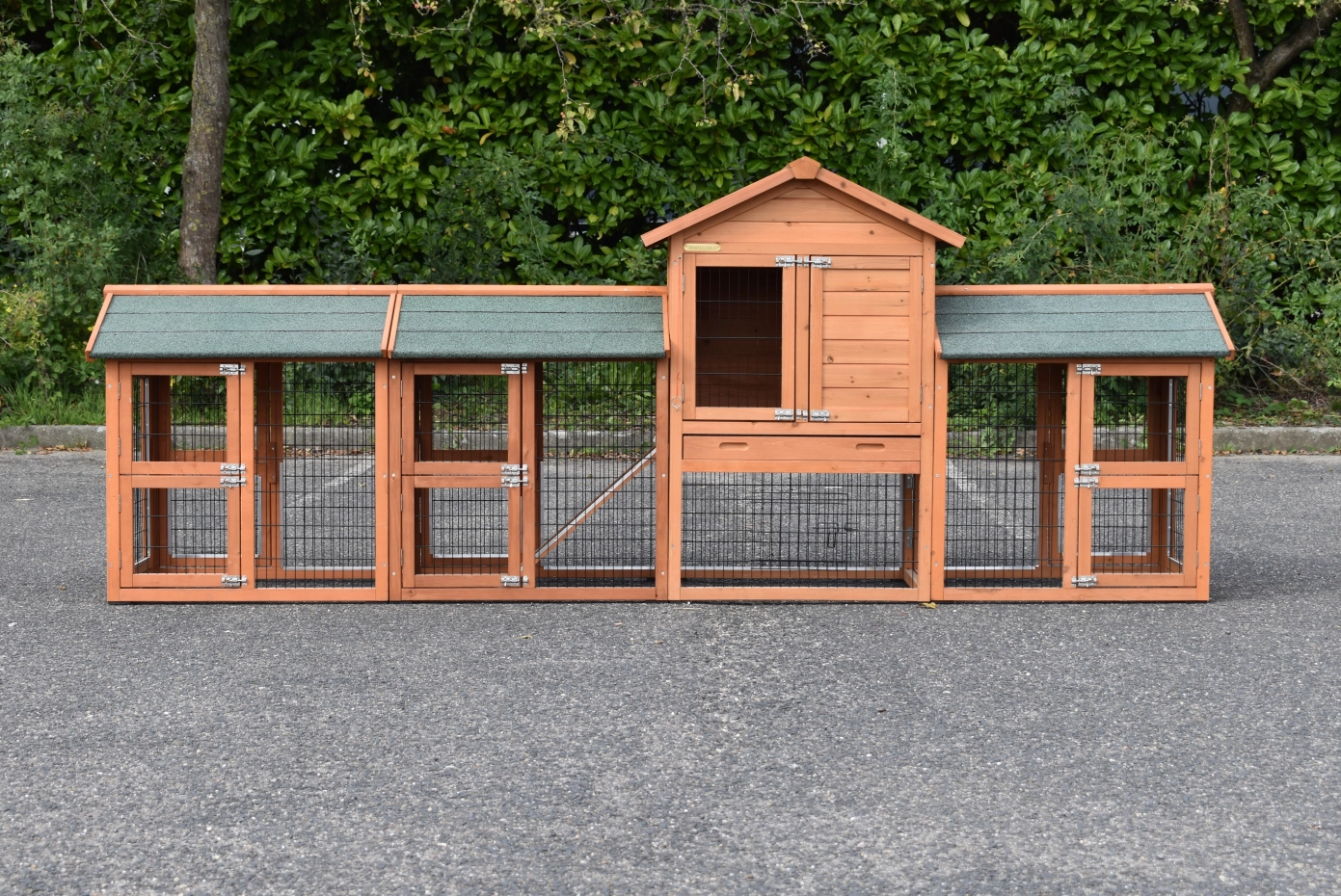 Clapier pour lapin Prestige Small est étendue avec 3 enclos Space Small. Le clapier a plusieurs portes et une tiroir en plastique, pour un nettoyage facilement. Le clapier a une grenier de stockage pratique. L'abri de nuit est approprié pour 2 lapins. Le maximal dimensions, incl. toit, ont 312x72x122cm.
