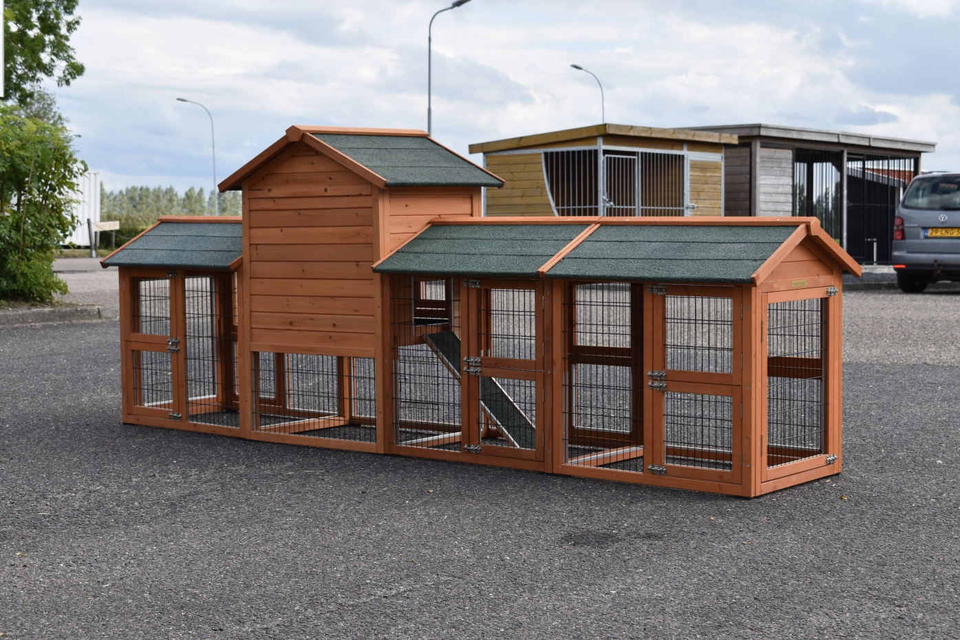 Le bois utilisé pour le loft est un produit naturel unique qu'a été produit dans le pays d'origine, après une sélection rigoureuse, dans une manière traditionelle. C'est caractéristique et unique à tous égards. Ce produit en bois a été un traitement manuel. Aucune pièce de bois ne possède la même forme, la même structure ou la même couleur, de sorte que les nuances de couleur sont inévitables, même dans un morceau de bois. Les fissures dues au vent, les craquelures, les imperfections et la présence de gros et de petits noeuds témoignent de leur origine et de leurs années de croissance. Les bosses sont généralement mises à jour manuellement avec du bois. Grâce à leur utilisation et à l’influence de la lumière, les nouveaux maisons pour animaux auront une couleur plus chaude au fil du temps. Les différences de couleur au modèle d'exposition sont donc possibles. L'enclos pour animaux est munie d'un fini antitache dans les couleurs comme sur la photo. Vous devez encore décaper le bois pour éviter les moisissures et la pourriture. Vous pouvez facilement commander des taches directement.