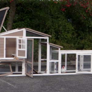 Le bois utilisé pour le loft est un produit naturel unique qu'a été produit dans le pays d'origine, après une sélection rigoureuse, dans une manière traditionelle. C'est caractéristique et unique à tous égards. Ce produit en bois a été un traitement manuel. Aucune pièce de bois ne possède la même forme, la même structure ou la même couleur, de sorte que les nuances de couleur sont inévitables, même dans un morceau de bois. Les fissures dues au vent, les craquelures, les imperfections et la présence de gros et de petits noeuds témoignent de leur origine et de leurs années de croissance. Les bosses sont généralement mises à jour manuellement avec du bois. Grâce à leur utilisation et à l’influence de la lumière, les nouveaux maisons pour animaux auront une couleur plus chaude au fil du temps. Les différences de couleur au modèle d'exposition sont donc possibles. L'enclos pour animaux est munie d'un fini antitache dans les couleurs comme sur la photo. Vous devez encore décaper le bois pour éviter les moisissures et la pourriture. Vous pouvez facilement commander des taches directement.