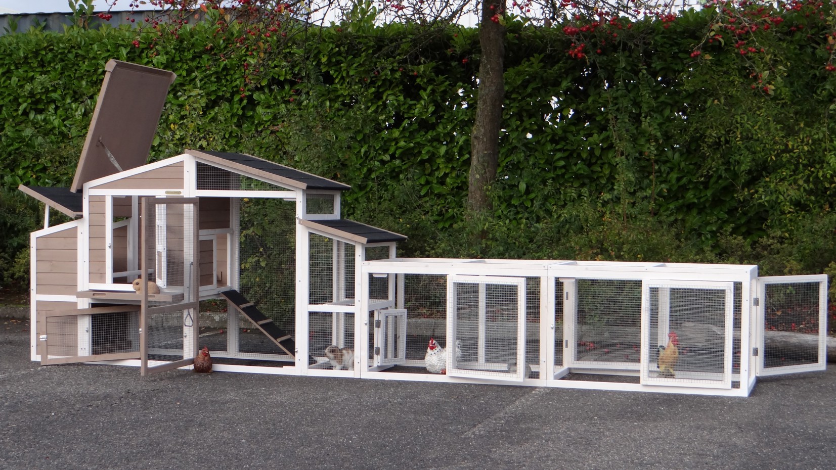 Il est conseillé de traiter périodiquement les charnières et les serrures avec un spray en silicone ou un spray pour serrures pour éviter la rouille et la corrosion. Si l'animal n'est pas dans un endroit abrité, nous vous conseillons d'ancrer l'enclos.