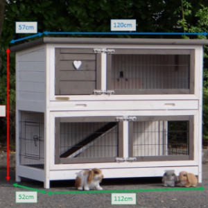 Les dimensions maximales du clapier Adrian sont 120x60x96cm. Le clapier est approprié pour 2 lapins moyens.