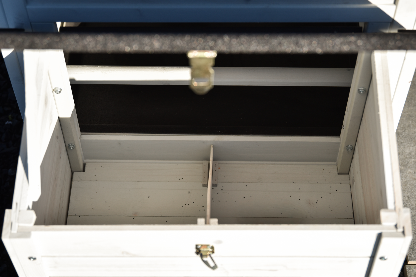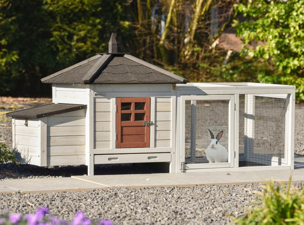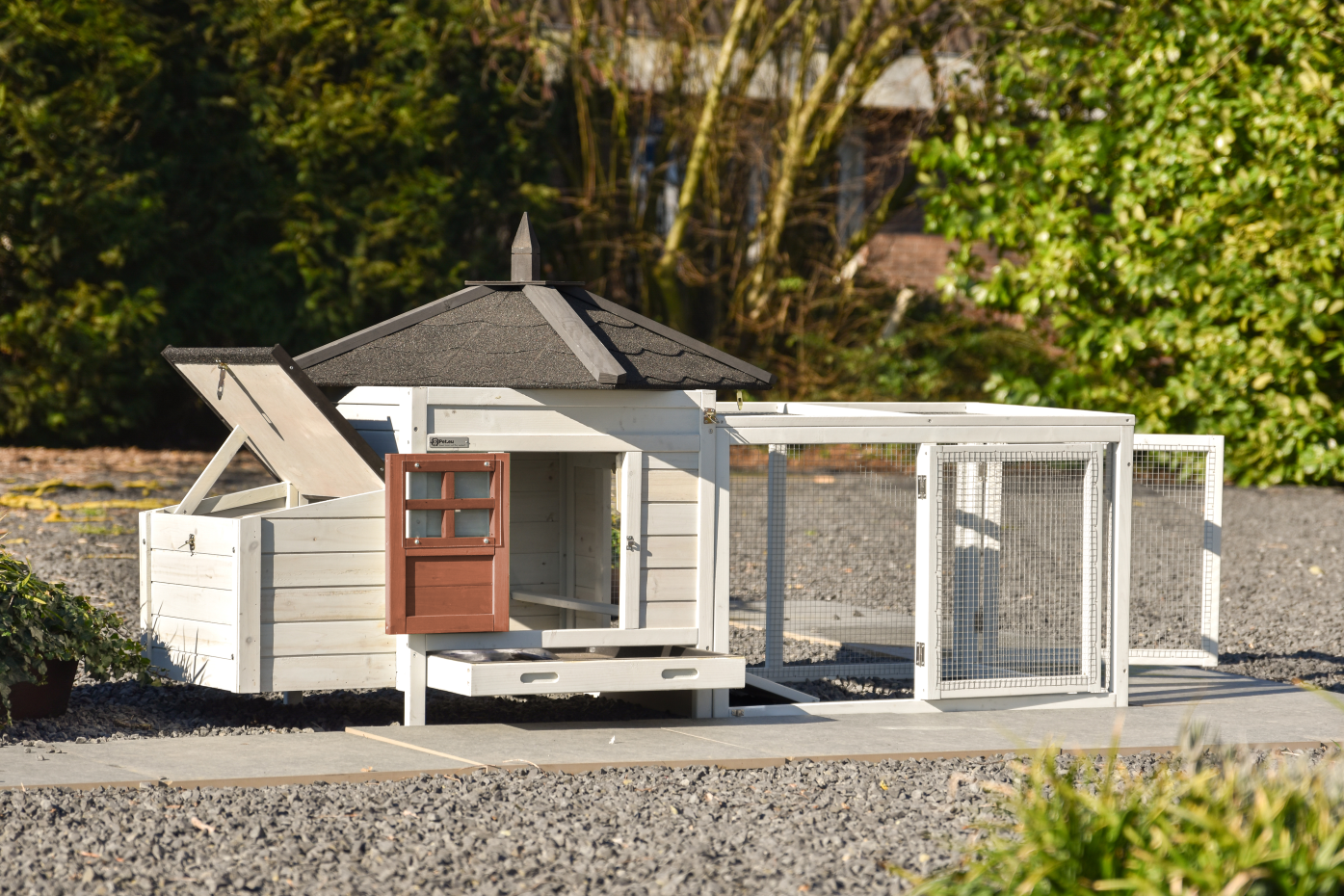 Le clapier Ambiance Small avec enclos est un véritable point de mire dans le jardin et combine une belle apparence avec un usage pratique. Le clapier est équipé d’un tiroir coulissant en plastique, ce qui facilite le nettoyage. Il possède également un toit entièrement amovible pour un accès supplémentaire et une porte latérale qui sert aussi de rampe. L’enclos est équipé d’un toit en grillage