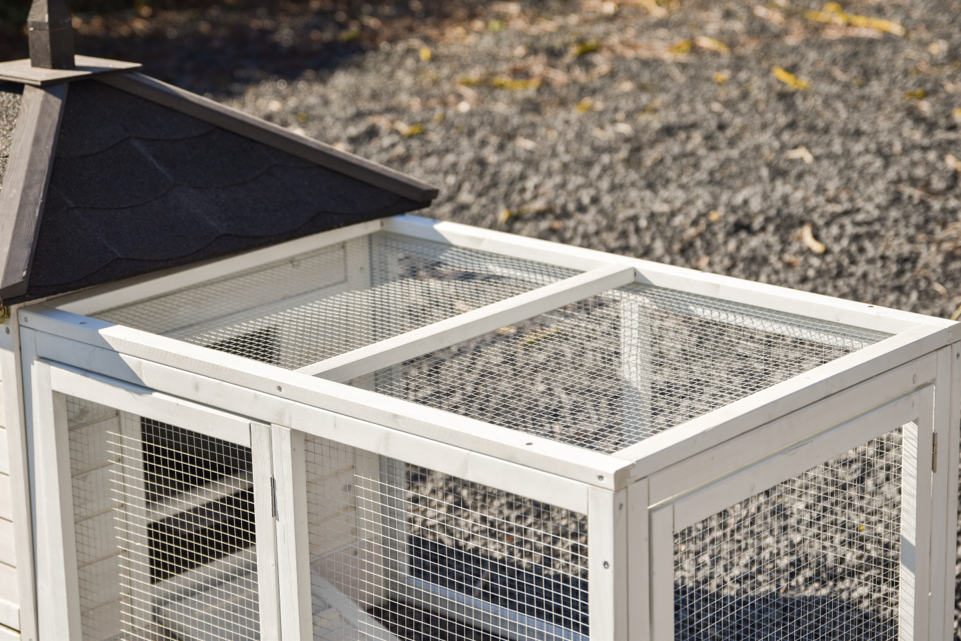 - Le toit d'enclos est équipé de maille (ca. 12x12mm)