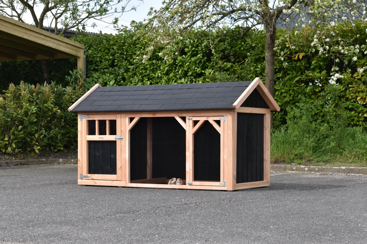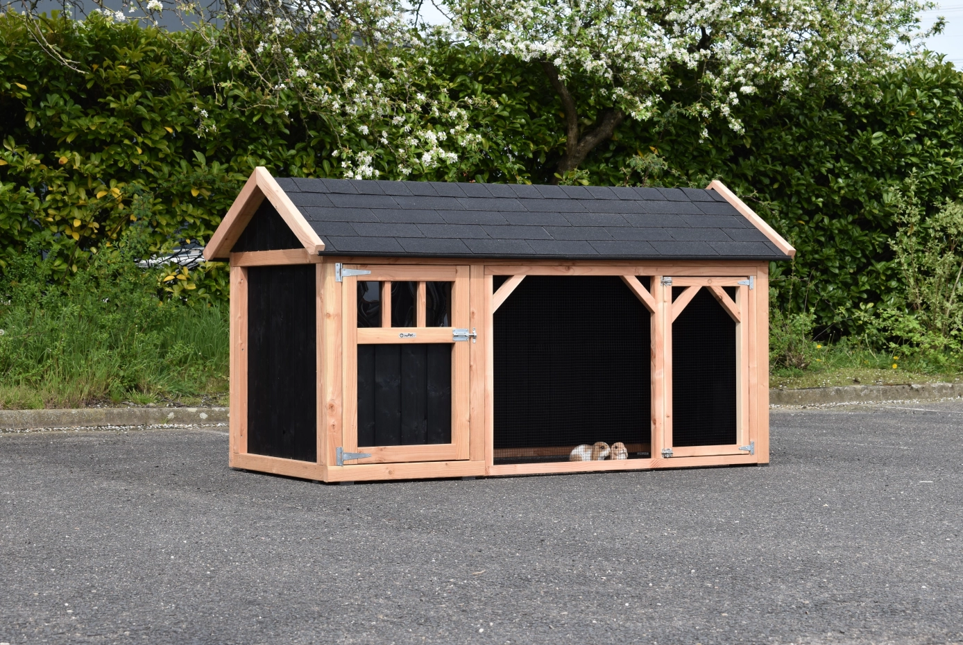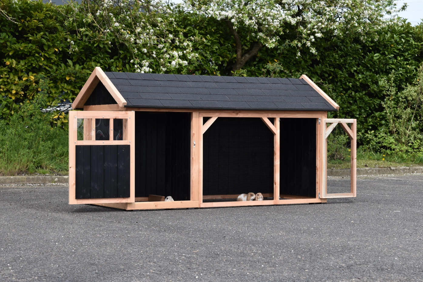 Le clapier Belle 1 à toit pointu est un beau clapier robuste avec un grand espace de jeu. Comme cette version de Belle 1 n'a qu'une ouverture à l'avant, les lapins sont à l'abri du vent et des intempéries. Le clapier abrité est doté d'un plancher en bois Douglas et d'une porte spacieuse. Il est fabriqué en interne à partir de matériaux de bonne qualité. Il ne nécessite donc aucun entretien et est très robuste.