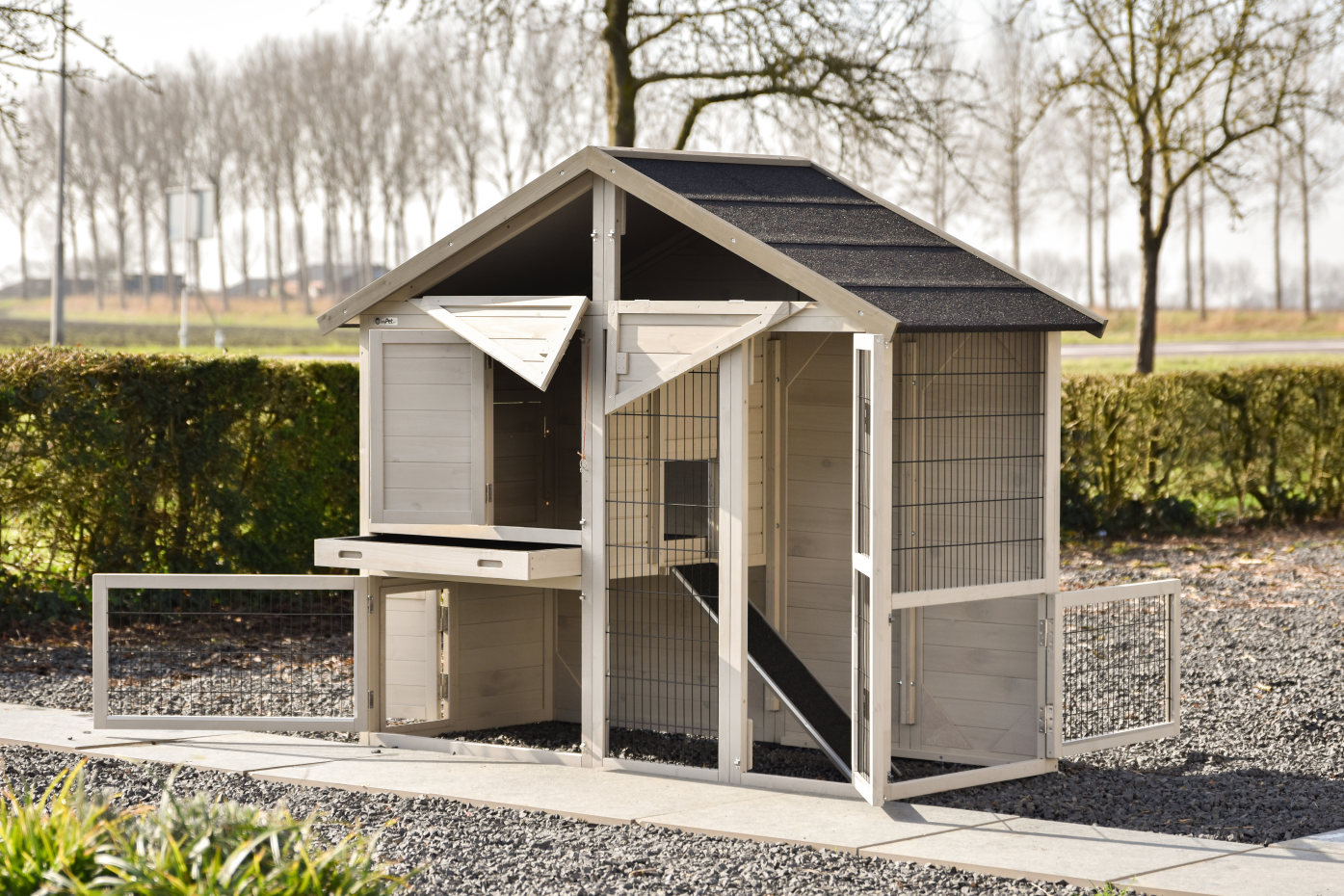 - Le clapier / poulailler est livré avec une instruction de montage simple