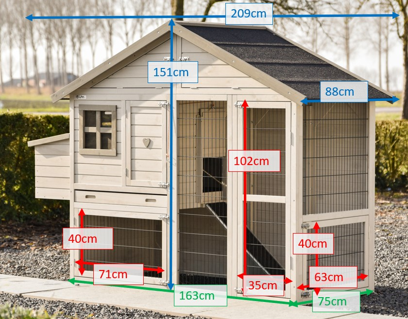| Dimensions extérieures incluant le toit et nichoir (LxPxH) | 209x88x151cm |