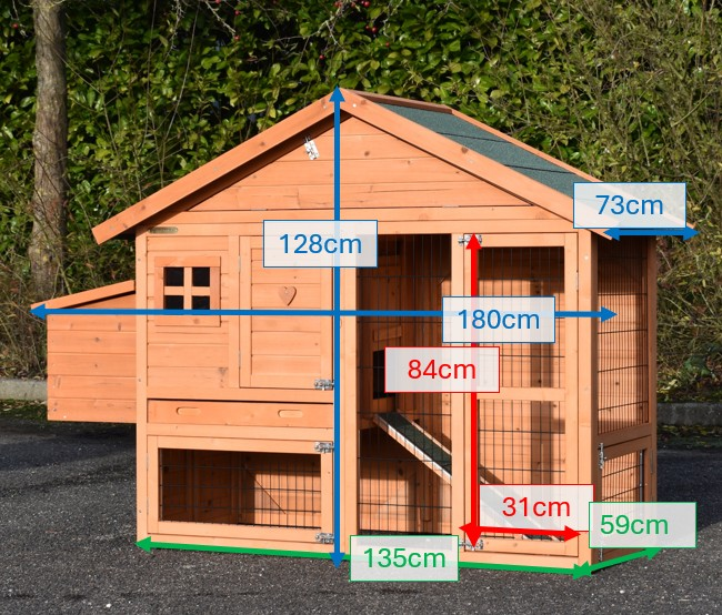 | Dimensions extérieures incluant le toit et nichoir (LxPxH) | 180x73x128cm |