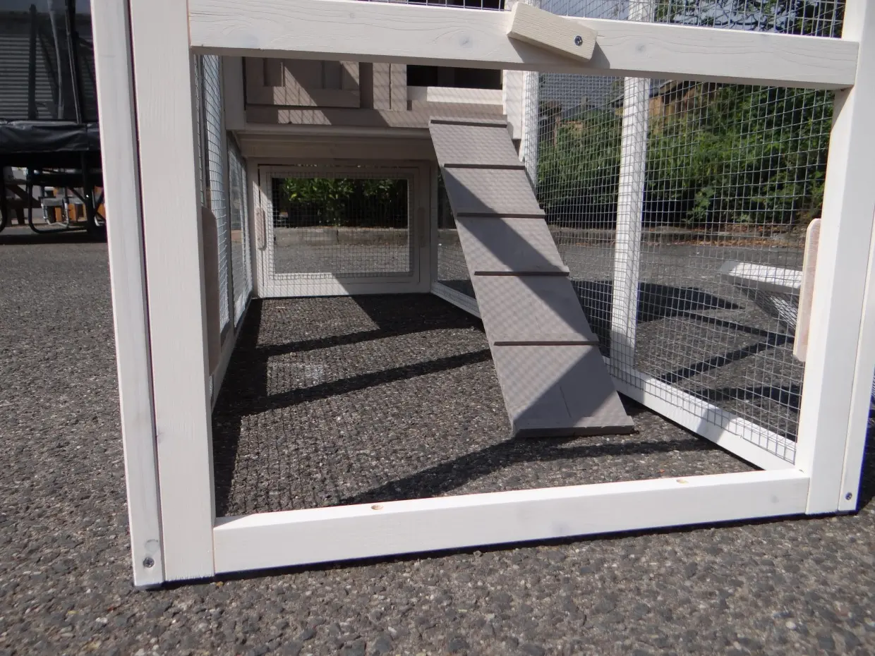 - Si ce n'est pas dans un endroit abrité, nous vous conseillons d'ancrer le clapier / poulailler