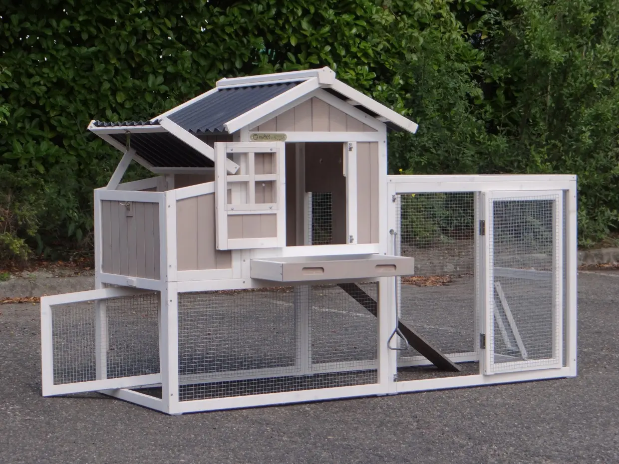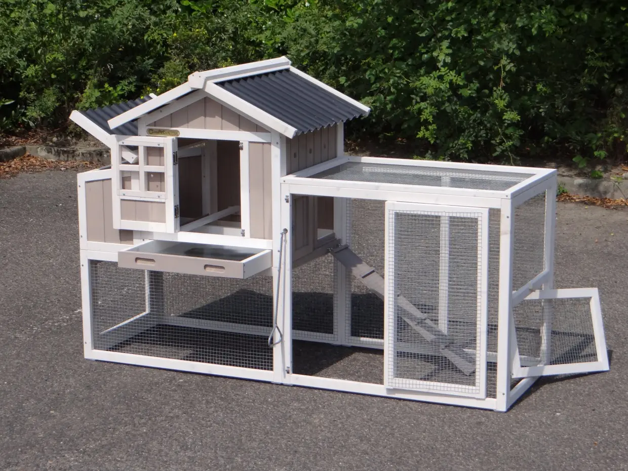 - Le clapier à lapin est équipé d'un toit en plastique