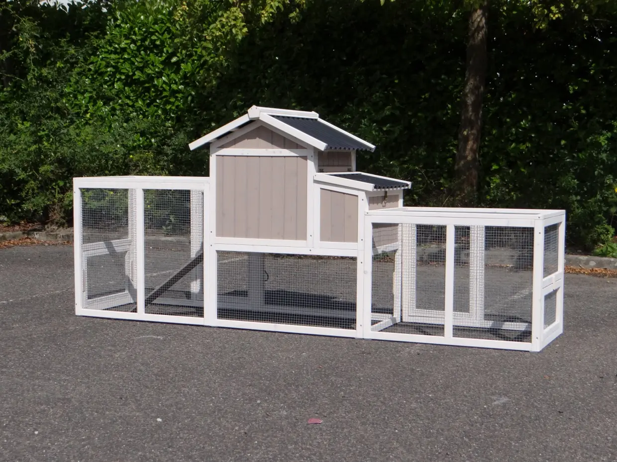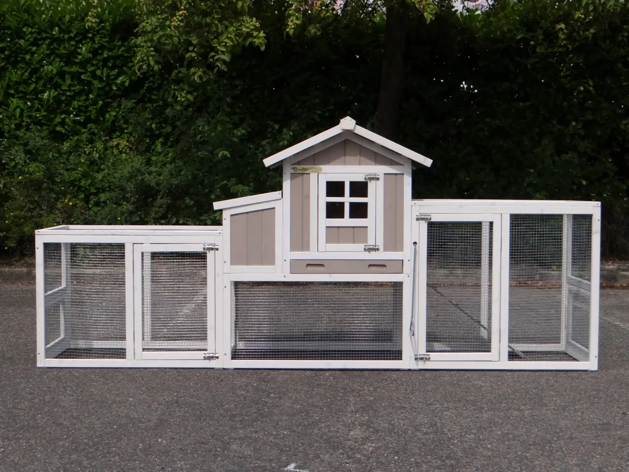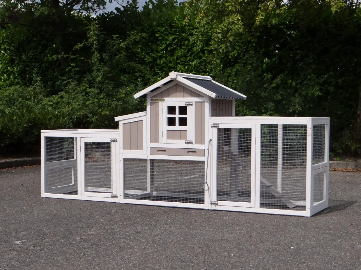 Le clapier pour lapin Joas est étendue avec 2 enclos. C'est l'un des rares clapiers avec un enclos des deux côtés et un espace de nidification! Le clapier est approprié pour 2 lapins. Il est livré dans les couleurs indiquées. Les dimensions maximal, inclus toit et enclos, ont 255x75x114cm.