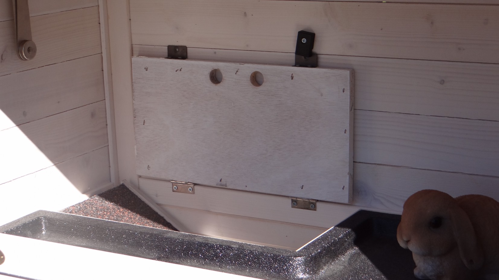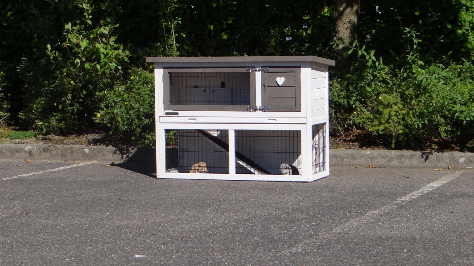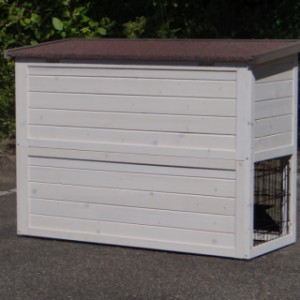 Le clapier double a un tiroir pratique sur la première étage.