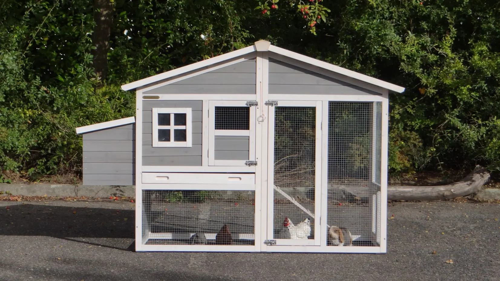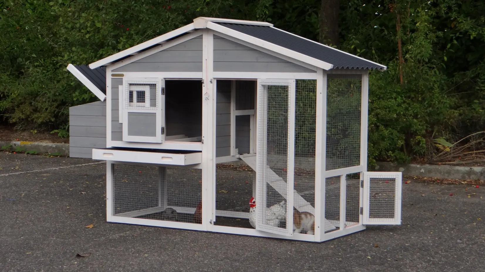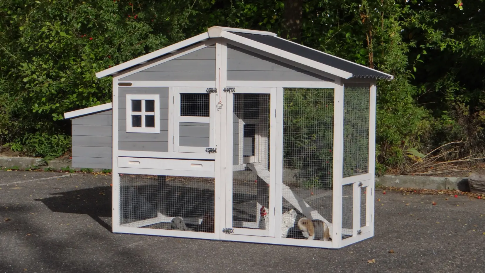 - Le clapier / poulailler est livré avec une instruction de montage simple