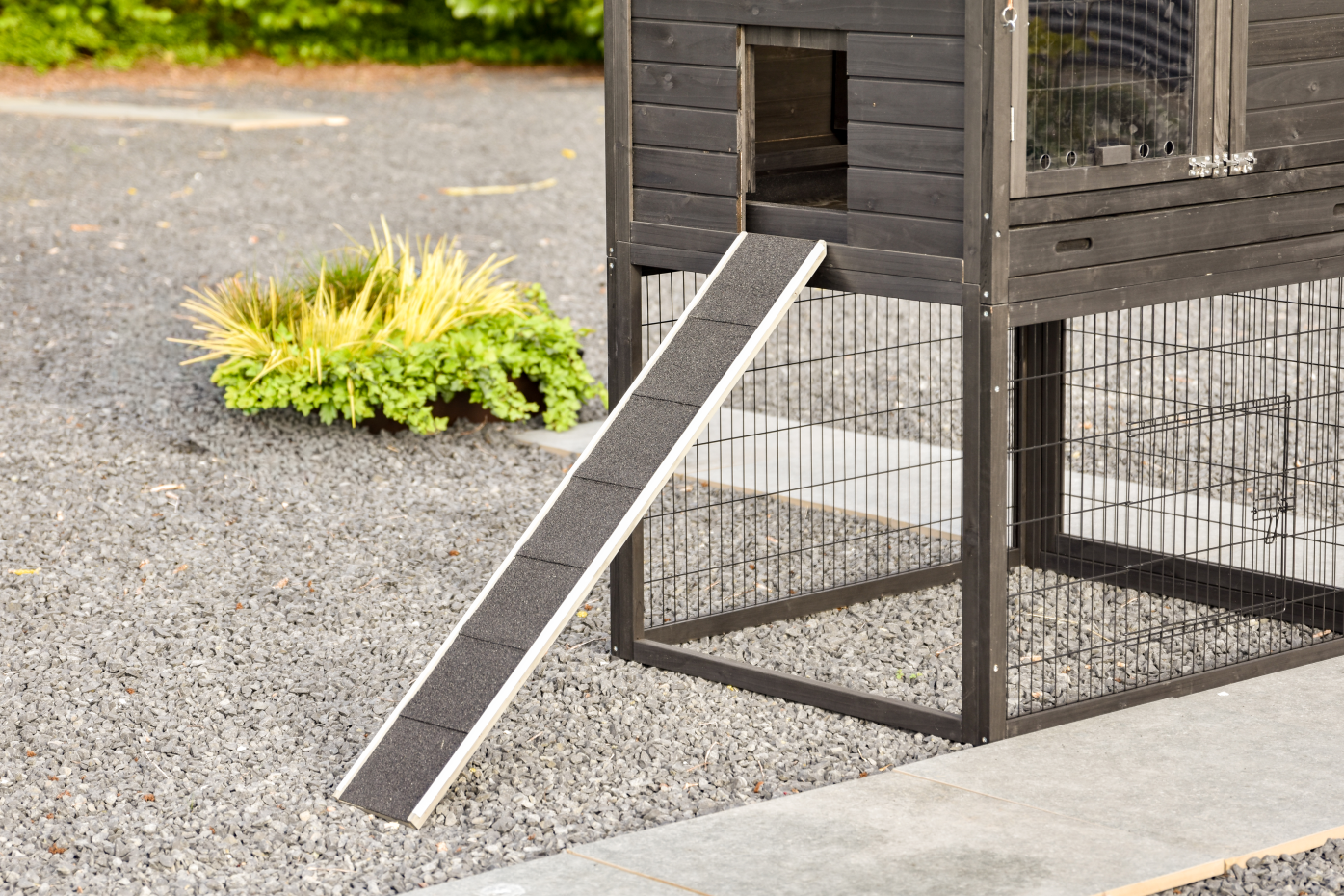- Si ce n'est pas dans un endroit abrité, nous vous conseillons d'ancrer le clapier / poulailler