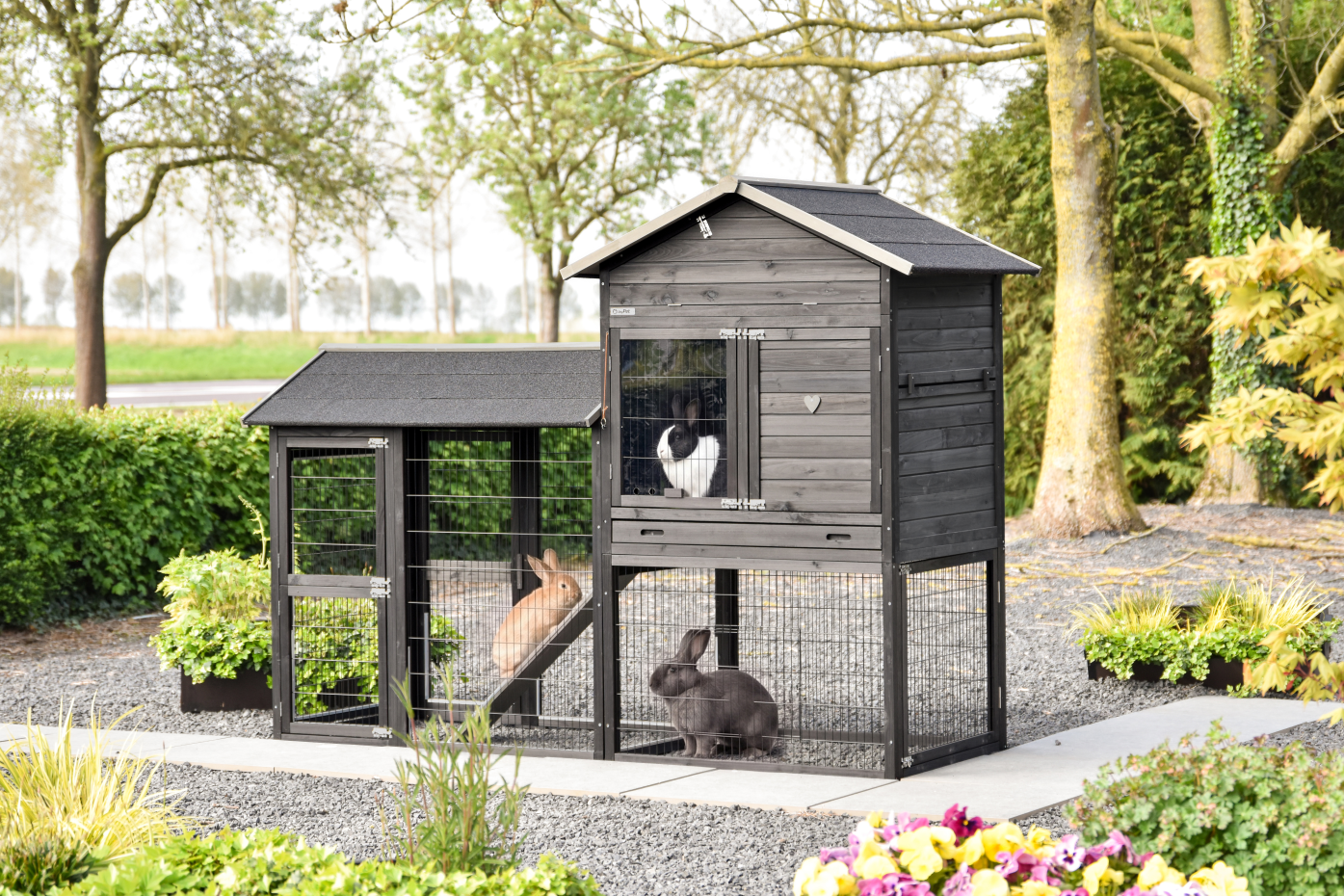 Clapier pour lapin Prestige Large avec enclos Black