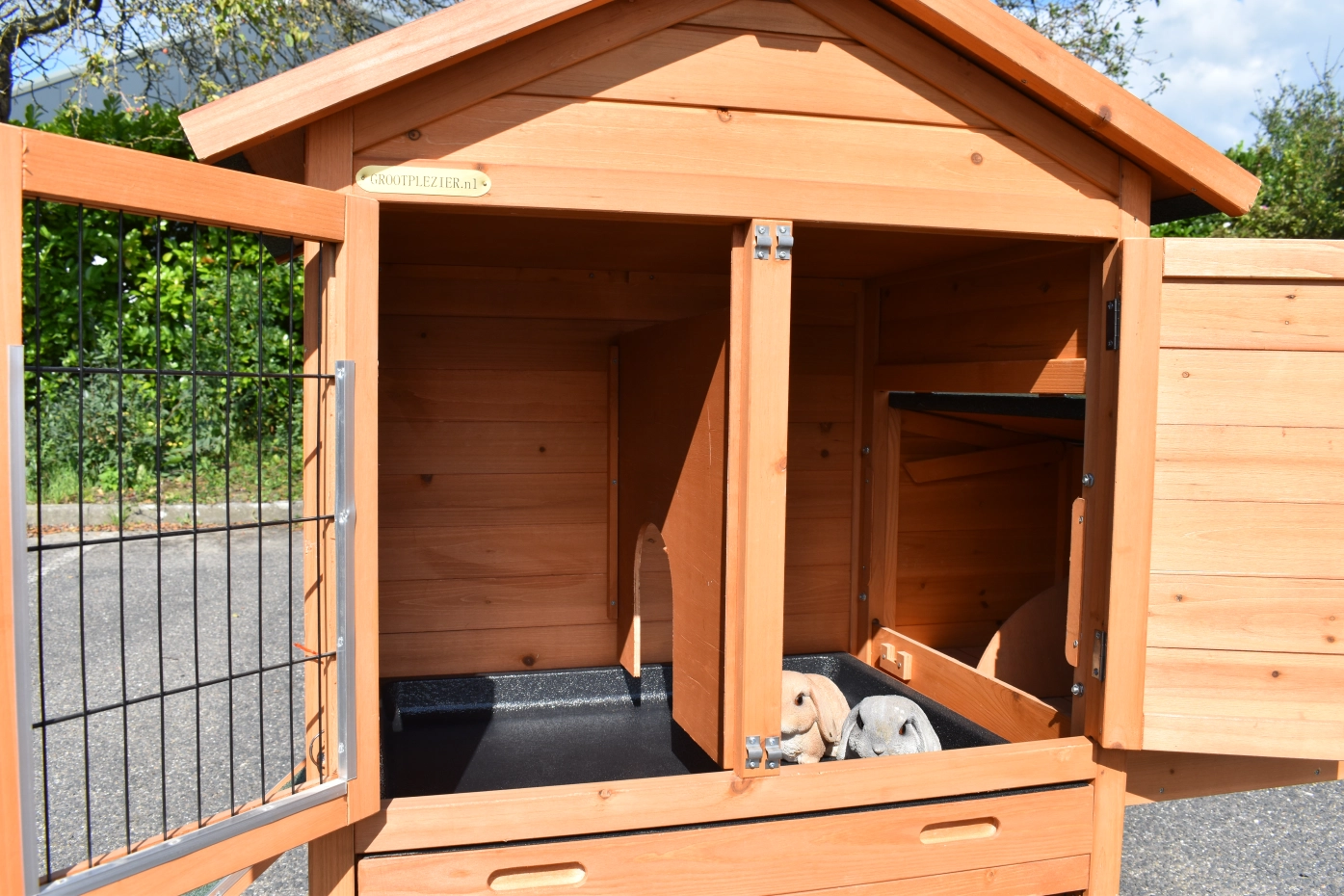 Le clapier pour lapin Prestige Small est étendue avec un enclos Space Small et un espace de couchage. Le clapier a un toit articulé, une grenier de stockage, une tiroir et grande portes. L'abri de nuit offre d'espace pour 2 lapins. Les dimensions maximal, incl. toit et pondoir, ont 191x72x122cm.