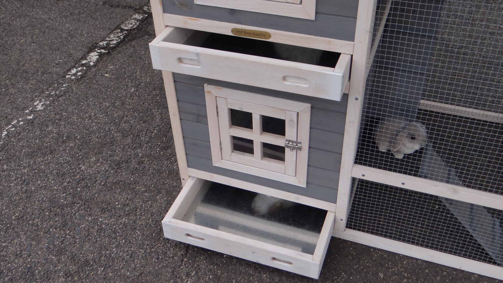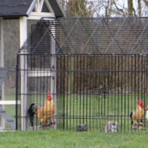 Il est conseillé de traiter périodiquement les charnières et les serrures avec un spray en silicone ou un spray pour serrures pour éviter la rouille et la corrosion. Si l'animal n'est pas dans un endroit abrité, nous vous conseillons d'ancrer l'enclos.