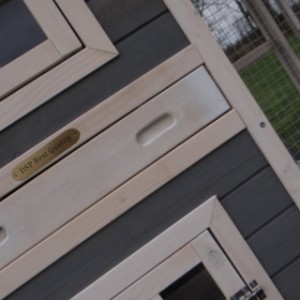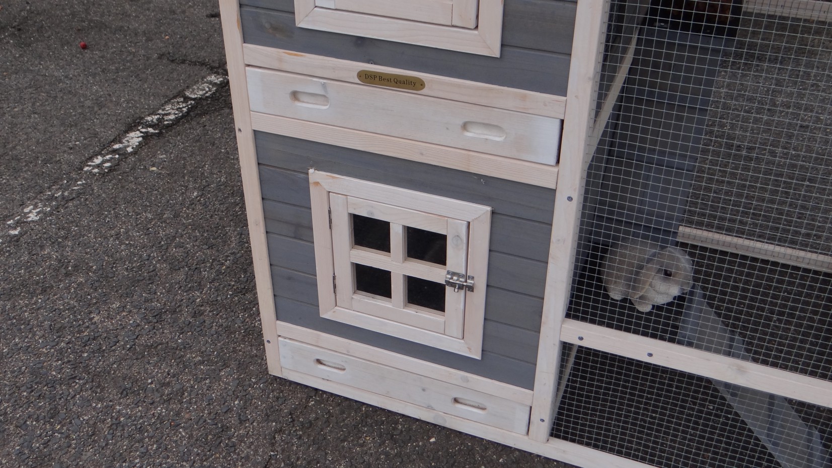 Le bois utilisé pour le loft est un produit naturel unique qu'a été produit dans le pays d'origine, après une sélection rigoureuse, dans une manière traditionelle. C'est caractéristique et unique à tous égards. Ce produit en bois a été un traitement manuel. Aucune pièce de bois ne possède la même forme, la même structure ou la même couleur, de sorte que les nuances de couleur sont inévitables, même dans un morceau de bois. Les fissures dues au vent, les craquelures, les imperfections et la présence de gros et de petits noeuds témoignent de leur origine et de leurs années de croissance. Les bosses sont généralement mises à jour manuellement avec du bois. Grâce à leur utilisation et à l’influence de la lumière, les nouveaux maisons pour animaux auront une couleur plus chaude au fil du temps. Les différences de couleur au modèle d'exposition sont donc possibles. L'enclos pour animaux est munie d'un fini antitache dans les couleurs comme sur la photo. Vous devez encore décaper le bois pour éviter les moisissures et la pourriture. Vous pouvez facilement commander des taches directement.