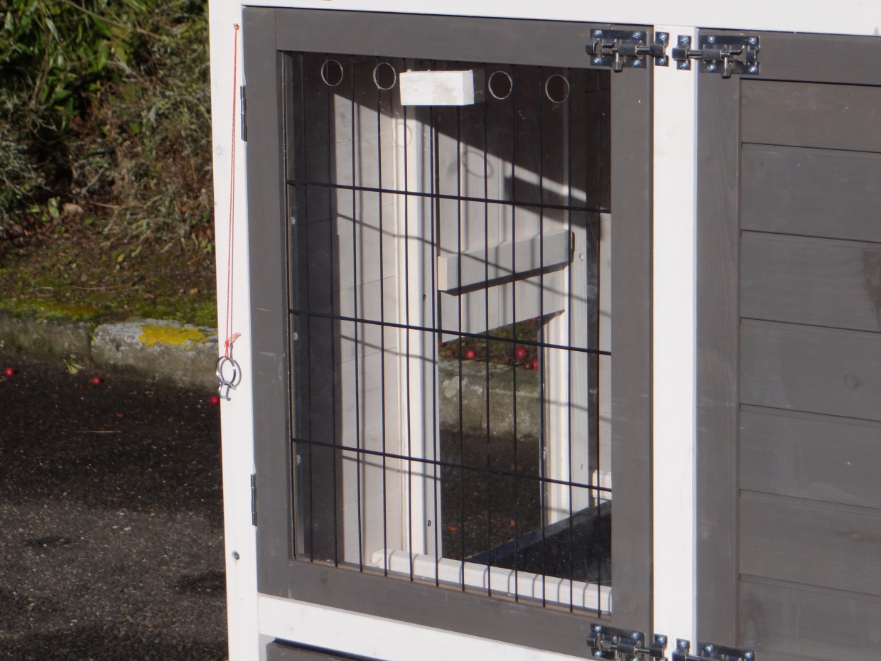 Il est conseillé de traiter périodiquement les charnières et les serrures avec un spray en silicone ou un spray pour serrures pour éviter la rouille et la corrosion. Si l'animal n'est pas dans un endroit abrité, nous vous conseillons d'ancrer l'enclos.