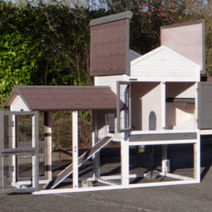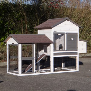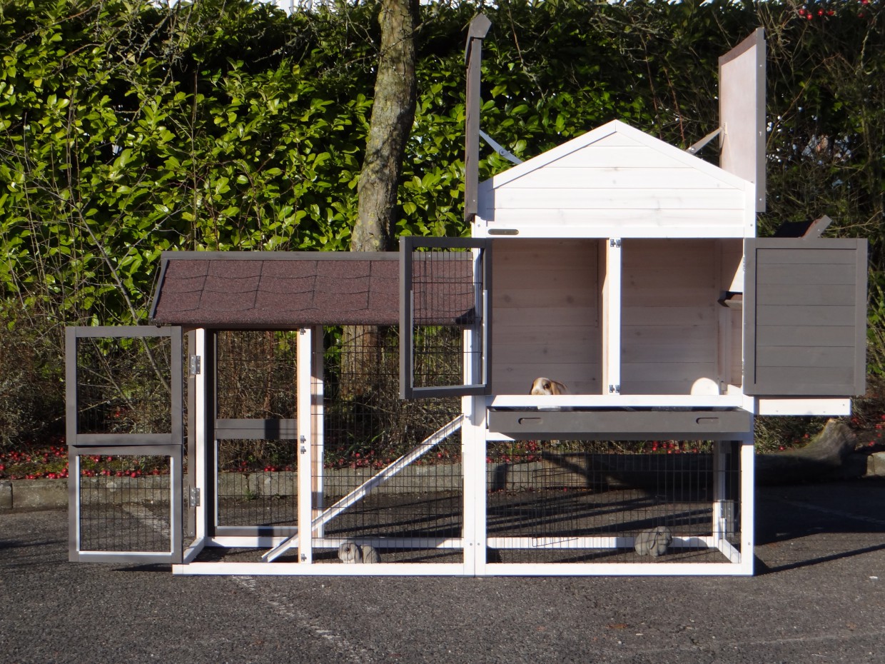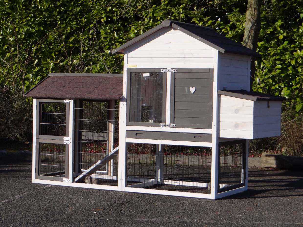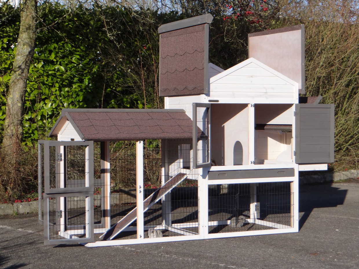 Le bois utilisé pour le loft est un produit naturel unique qu'a été produit dans le pays d'origine, après une sélection rigoureuse, dans une manière traditionelle. C'est caractéristique et unique à tous égards. Ce produit en bois a été un traitement manuel. Aucune pièce de bois ne possède la même forme, la même structure ou la même couleur, de sorte que les nuances de couleur sont inévitables, même dans un morceau de bois. Les fissures dues au vent, les craquelures, les imperfections et la présence de gros et de petits noeuds témoignent de leur origine et de leurs années de croissance. Les bosses sont généralement mises à jour manuellement avec du bois. Grâce à leur utilisation et à l’influence de la lumière, les nouveaux maisons pour animaux auront une couleur plus chaude au fil du temps. Les différences de couleur au modèle d'exposition sont donc possibles. L'enclos pour animaux est munie d'un fini antitache dans les couleurs comme sur la photo. Vous devez encore décaper le bois pour éviter les moisissures et la pourriture. Vous pouvez facilement commander des taches directement.