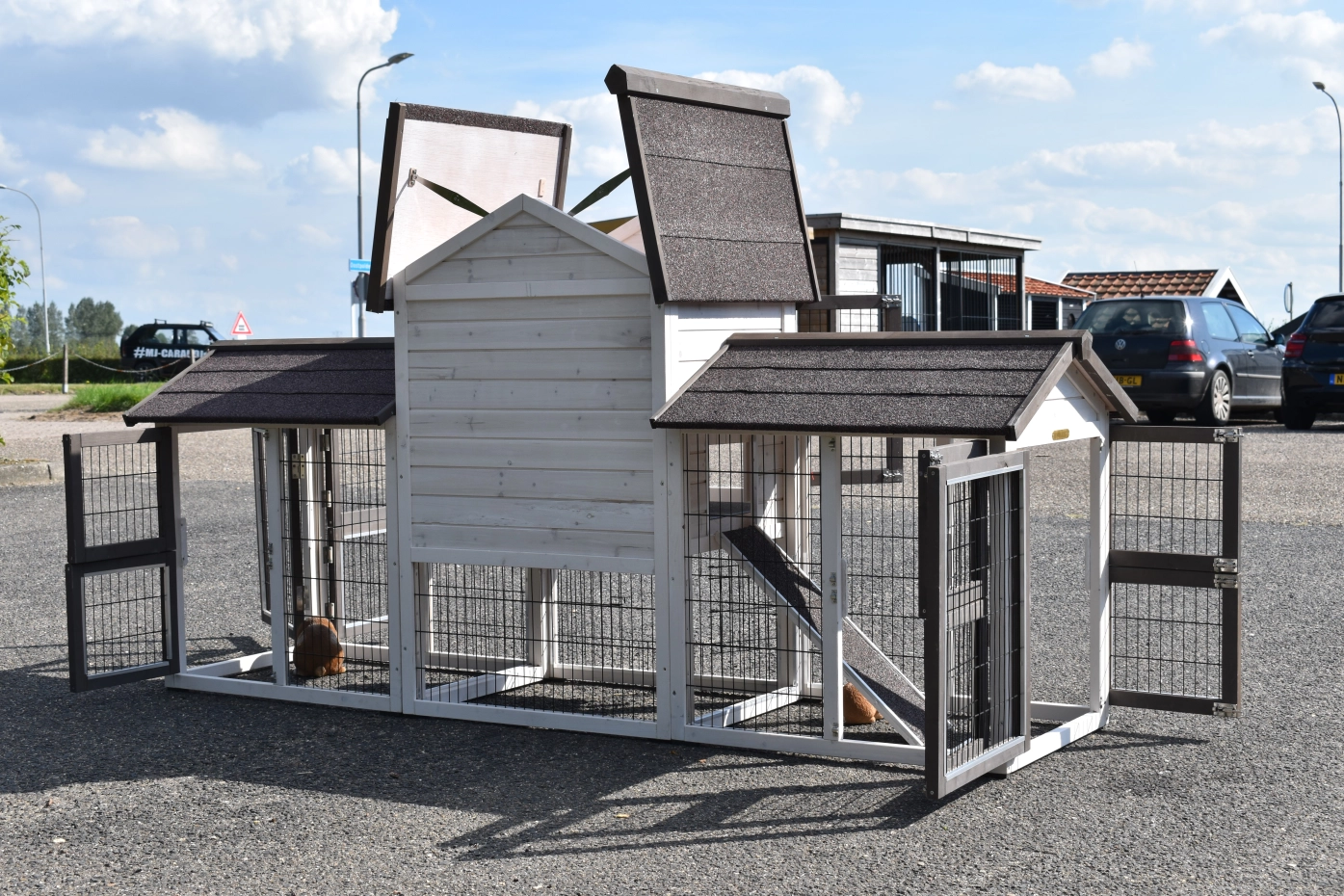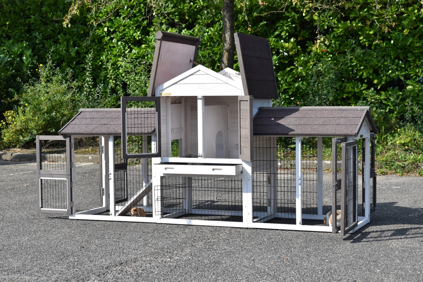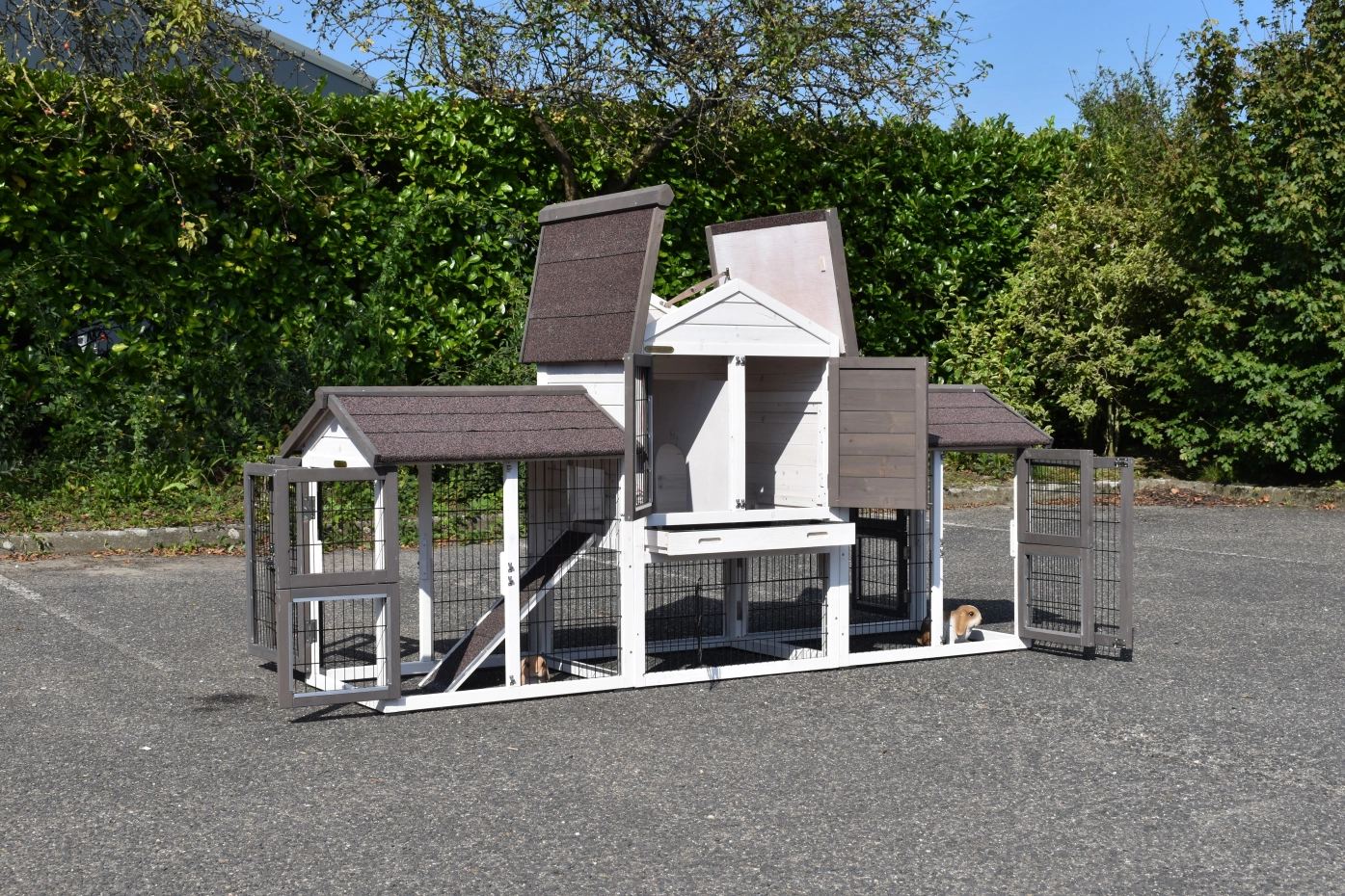 Clapier pour lapin Prestige Small avec 2 enclos est un beau clapier avec grande portes et anti-mordillage. Ce clapier pratique a une grenier de stockage au-dessus de l'abri de nuit. Clapier pour lapin Prestige Small a une tiroir en plastique, pour un nettoyage facile.