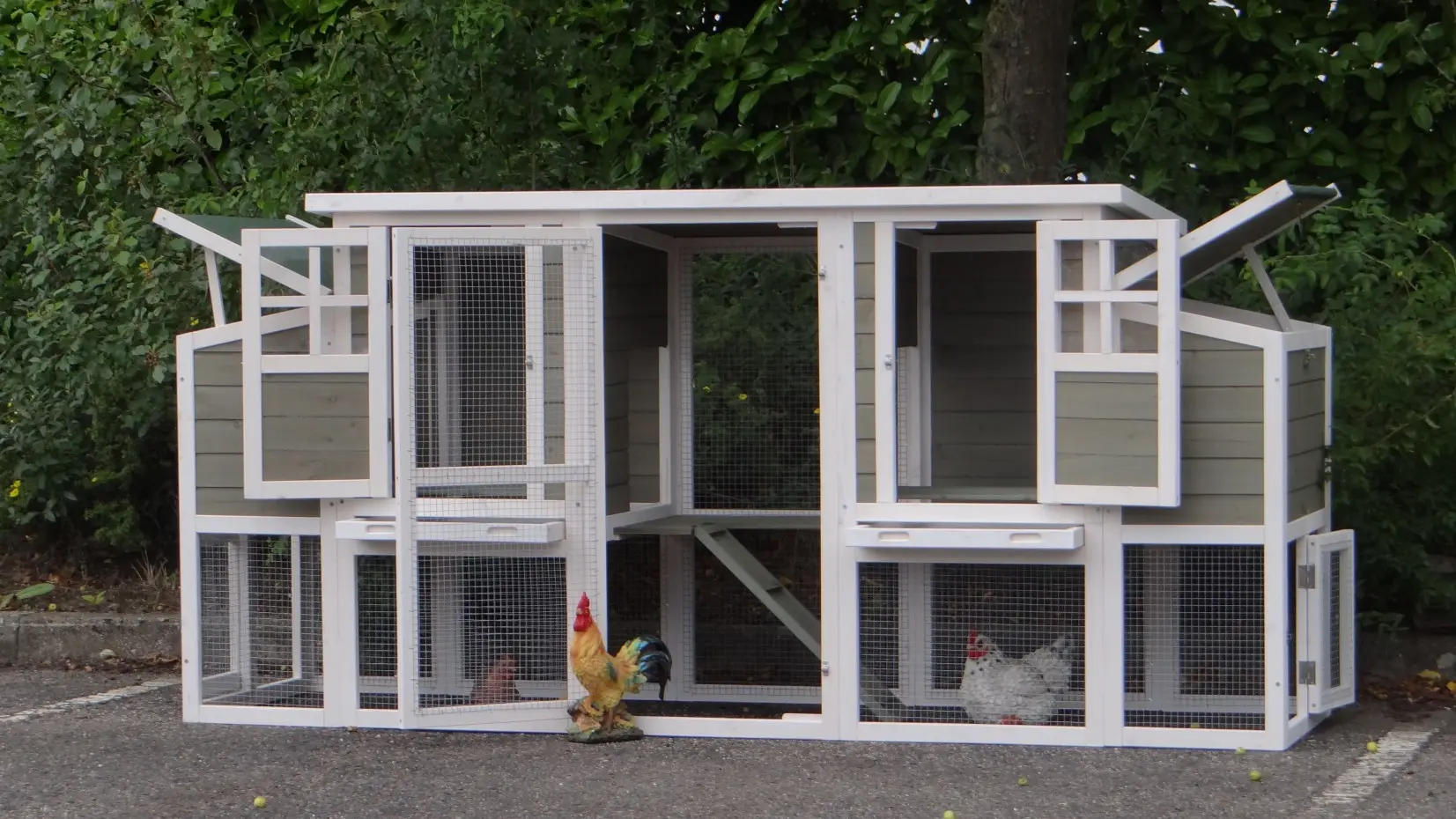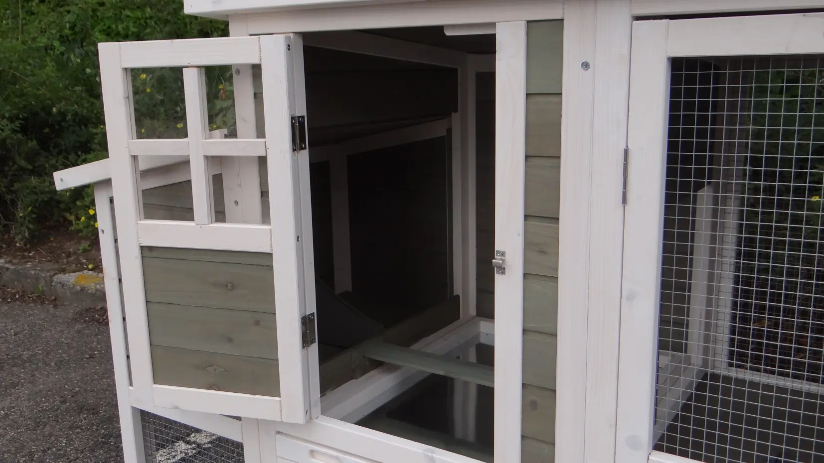 Il est conseillé de traiter périodiquement les charnières et les serrures avec un spray en silicone ou un spray pour serrures pour éviter la rouille et la corrosion. Si l'animal n'est pas dans un endroit abrité, nous vous conseillons d'ancrer l'enclos.