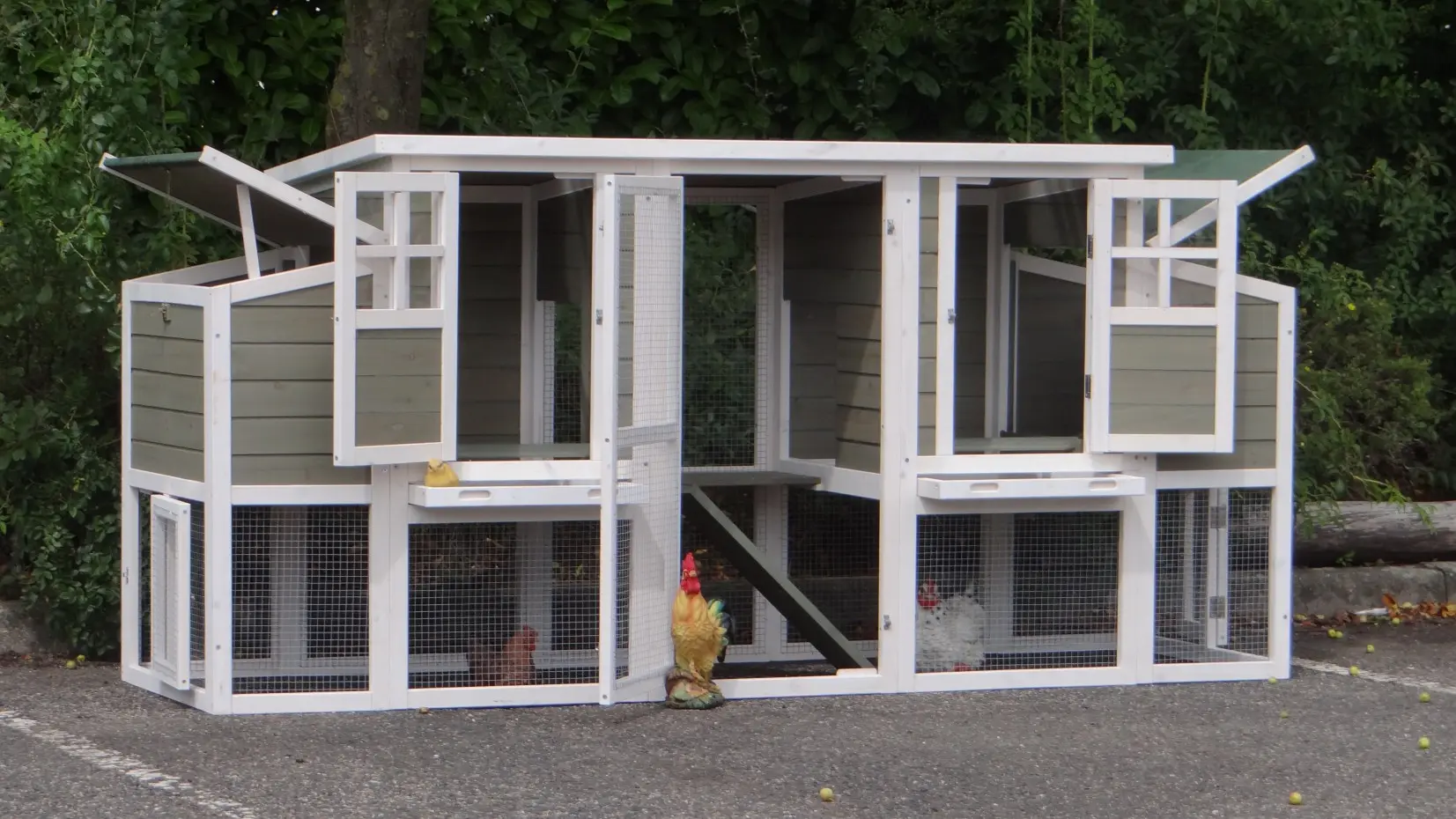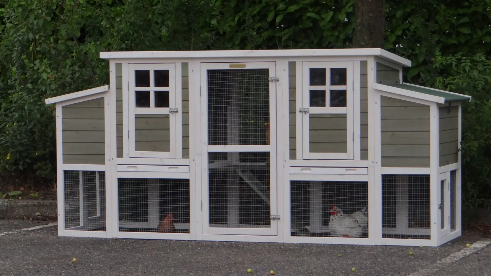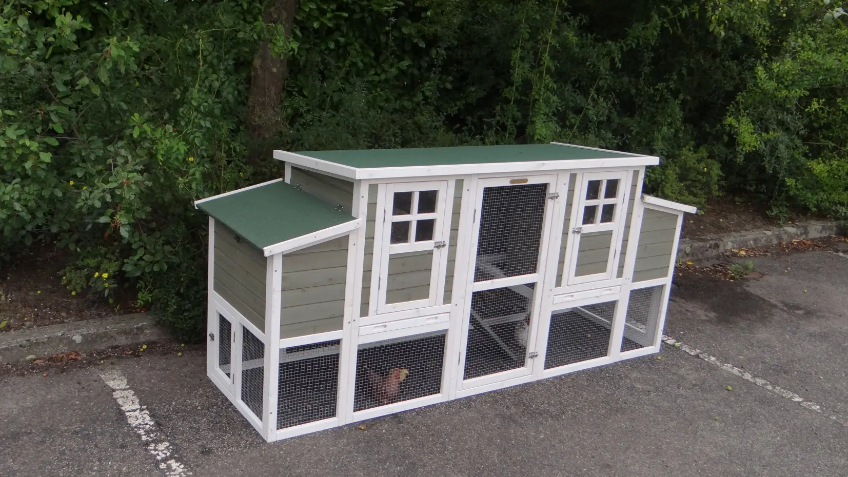 Le bois utilisé pour le loft est un produit naturel unique qu'a été produit dans le pays d'origine, après une sélection rigoureuse, dans une manière traditionelle. C'est caractéristique et unique à tous égards. Ce produit en bois a été un traitement manuel. Aucune pièce de bois ne possède la même forme, la même structure ou la même couleur, de sorte que les nuances de couleur sont inévitables, même dans un morceau de bois. Les fissures dues au vent, les craquelures, les imperfections et la présence de gros et de petits noeuds témoignent de leur origine et de leurs années de croissance. Les bosses sont généralement mises à jour manuellement avec du bois. Grâce à leur utilisation et à l’influence de la lumière, les nouveaux maisons pour animaux auront une couleur plus chaude au fil du temps. Les différences de couleur au modèle d'exposition sont donc possibles. L'enclos pour animaux est munie d'un fini antitache dans les couleurs comme sur la photo. Vous devez encore décaper le bois pour éviter les moisissures et la pourriture. Vous pouvez facilement commander des taches directement.
