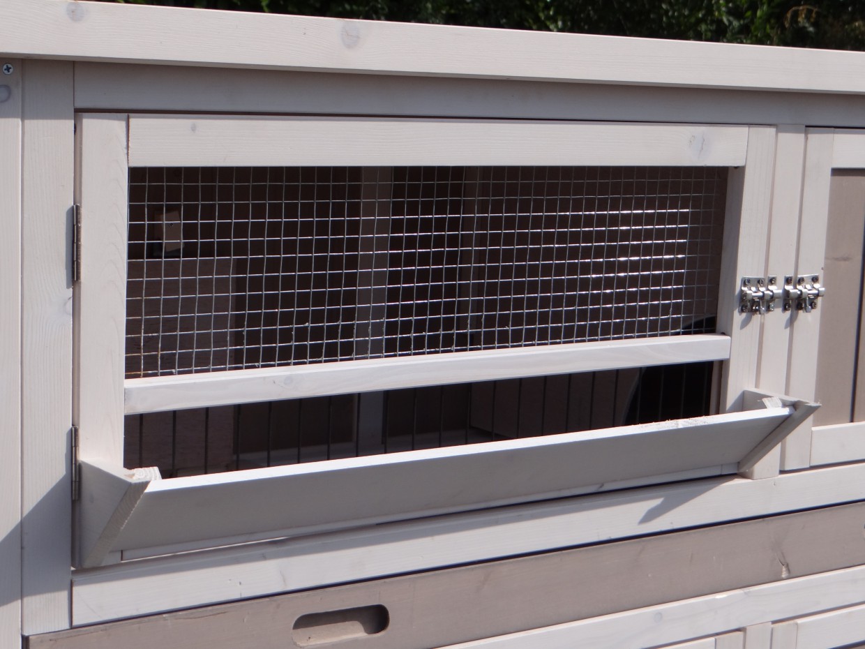 Il est conseillé de traiter périodiquement les charnières et les serrures avec un spray en silicone ou un spray pour serrures pour éviter la rouille et la corrosion. Si l'animal n'est pas dans un endroit abrité, nous vous conseillons d'ancrer l'enclos.