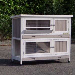Le bois utilisé pour le loft est un produit naturel unique qu'a été produit dans le pays d'origine, après une sélection rigoureuse, dans une manière traditionelle. C'est caractéristique et unique à tous égards. Ce produit en bois a été un traitement manuel. Aucune pièce de bois ne possède la même forme, la même structure ou la même couleur, de sorte que les nuances de couleur sont inévitables, même dans un morceau de bois. Les fissures dues au vent, les craquelures, les imperfections et la présence de gros et de petits noeuds témoignent de leur origine et de leurs années de croissance. Les bosses sont généralement mises à jour manuellement avec du bois. Grâce à leur utilisation et à l’influence de la lumière, les nouveaux maisons pour animaux auront une couleur plus chaude au fil du temps. Les différences de couleur au modèle d'exposition sont donc possibles. L'enclos pour animaux est munie d'un fini antitache dans les couleurs comme sur la photo. Vous devez encore décaper le bois pour éviter les moisissures et la pourriture. Vous pouvez facilement commander des taches directement.