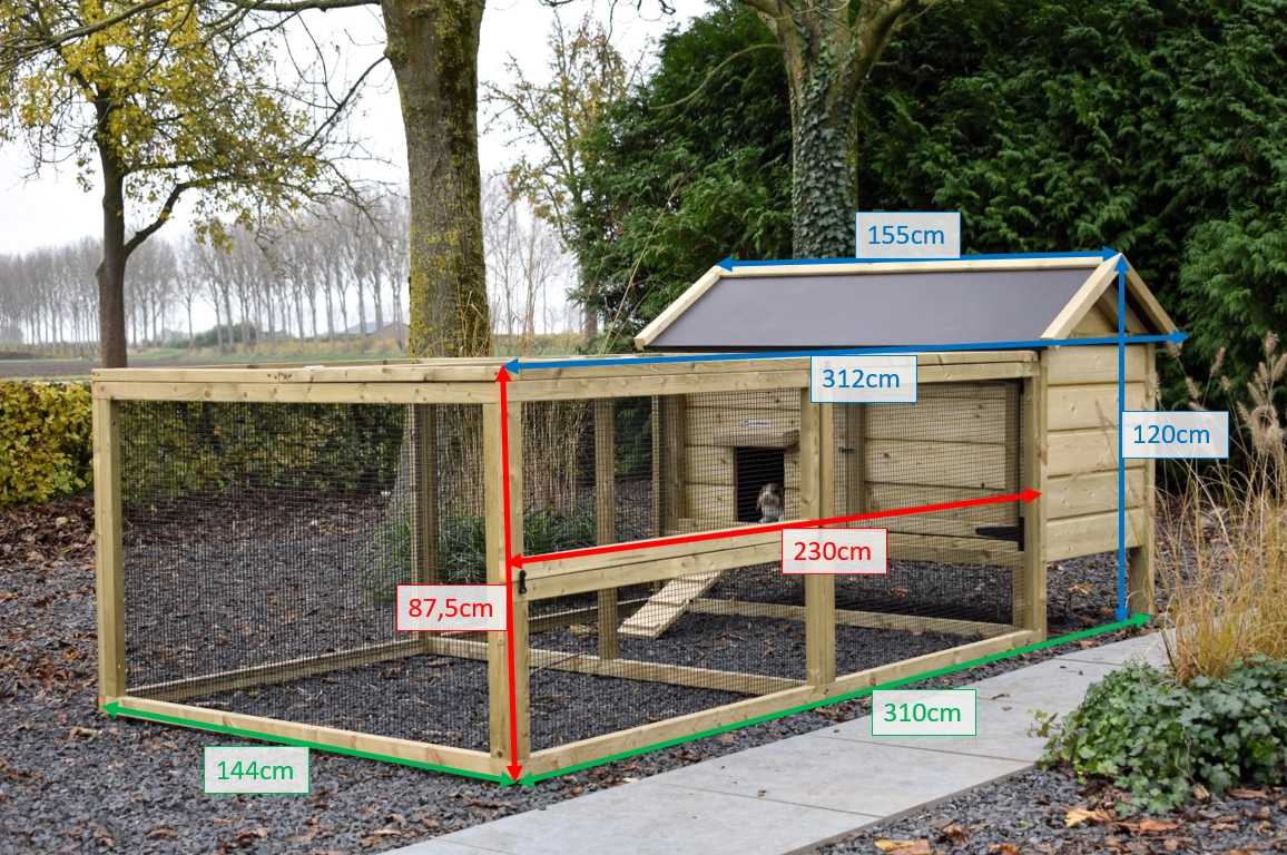 | Dimensions intérieures du nichoir (LxPxH) | 137x67x60cm |
