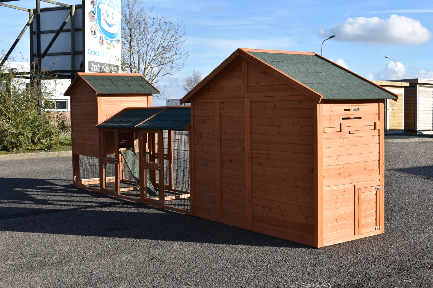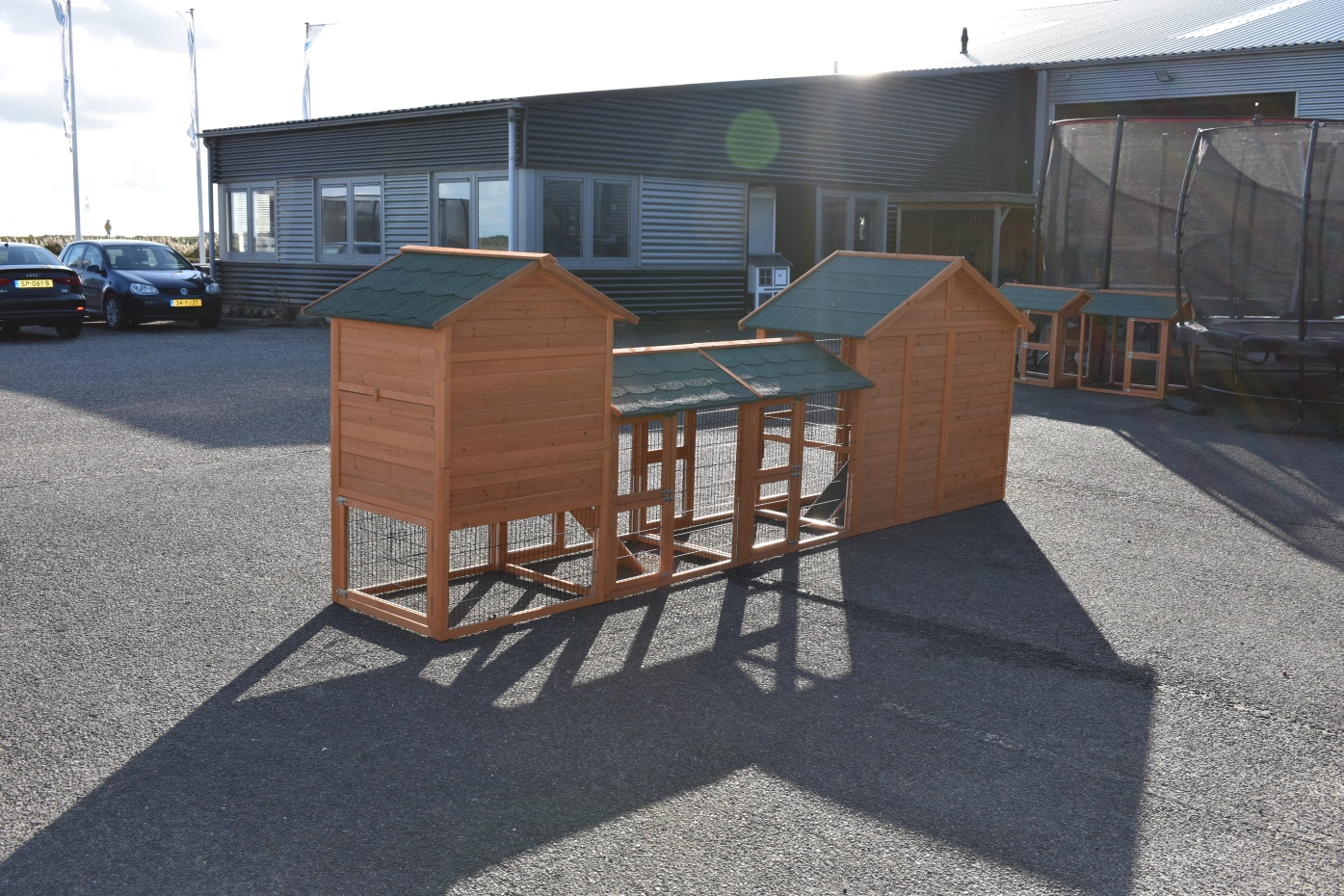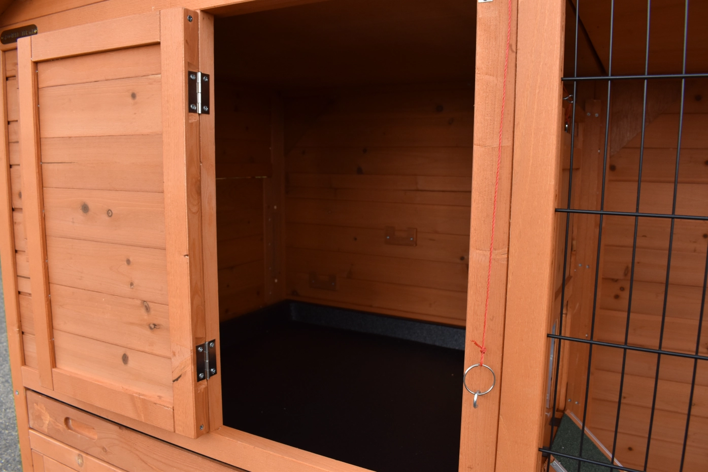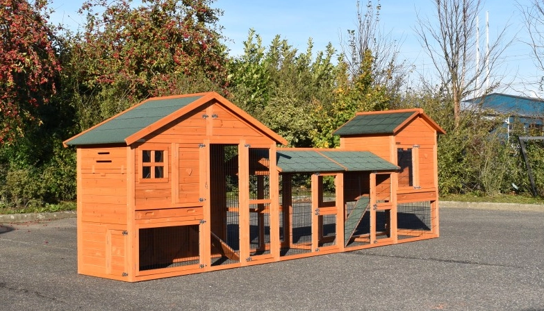 Le clapier pour lapin Holiday Medium est étendue avec le clapier Prestige Medium. Les deux clapiers ont connecté avec 2 enclos. Le grande combinaison convient parfaitement à l'hébergement de lapins de grande taille, tels que les cornes françaises, les géants flamands ou d'autres races de grande taille. La combinaison est approprié pour 4 à 8 lapins.