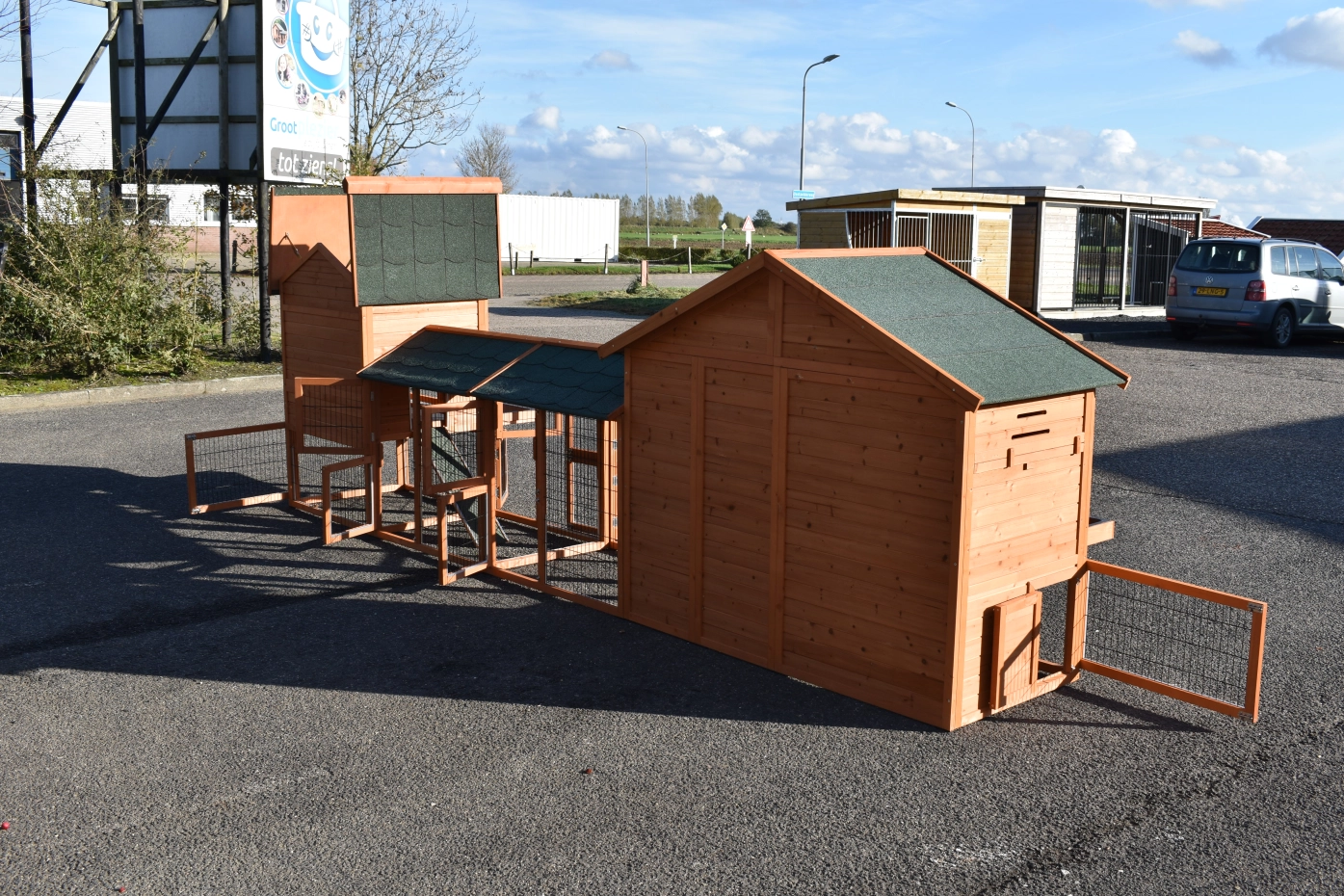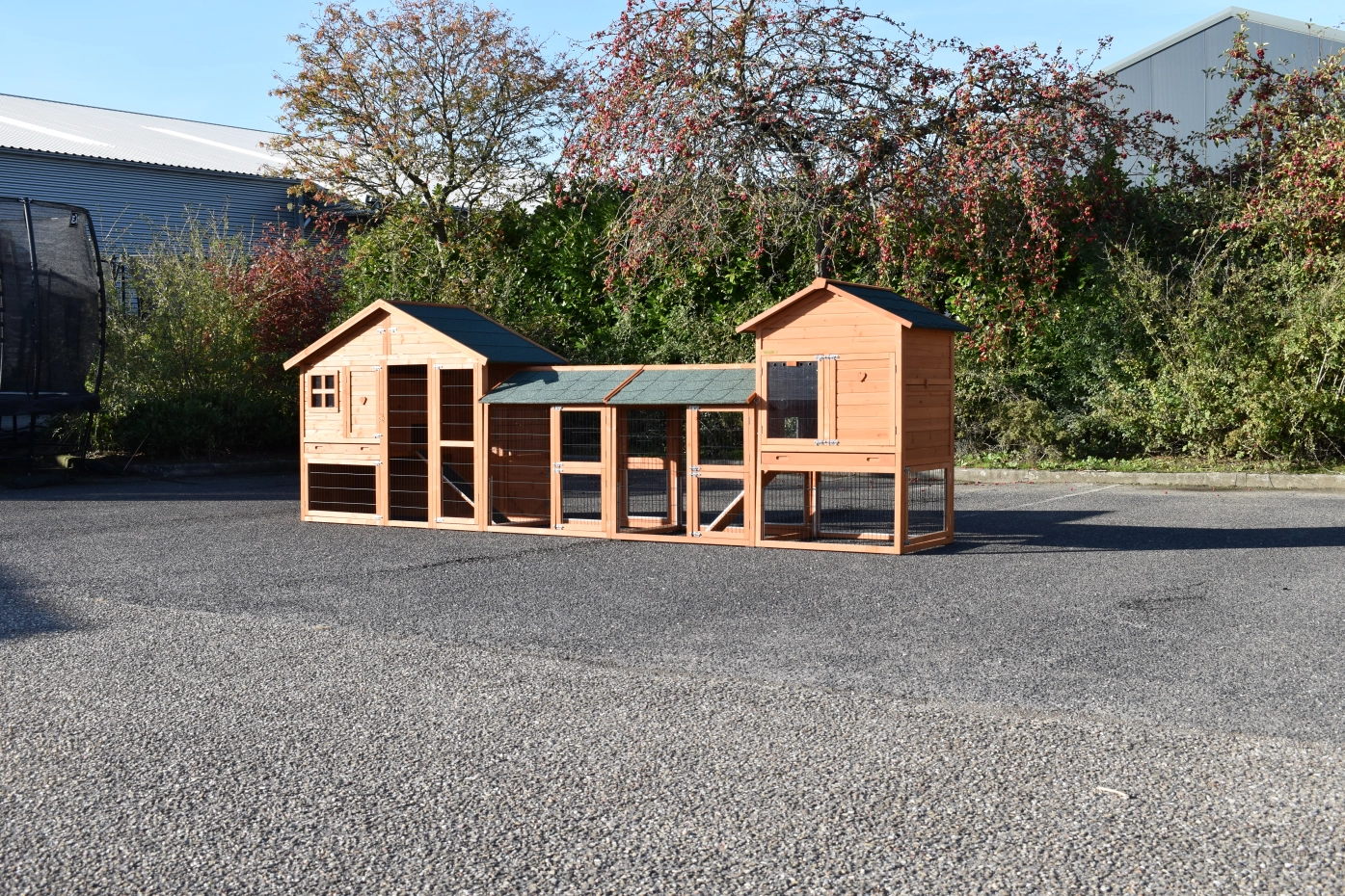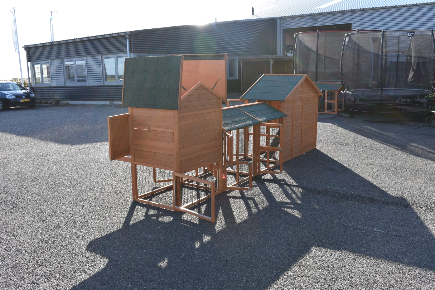 Le clapier pour lapin Holiday Medium est étendue avec le clapier Prestige Medium. Les deux clapiers ont connecté avec 2 enclos. Le grande combinaison convient parfaitement à l'hébergement de lapins de grande taille, tels que les cornes françaises, les géants flamands ou d'autres races de grande taille. La combinaison est approprié pour 4 à 8 lapins.