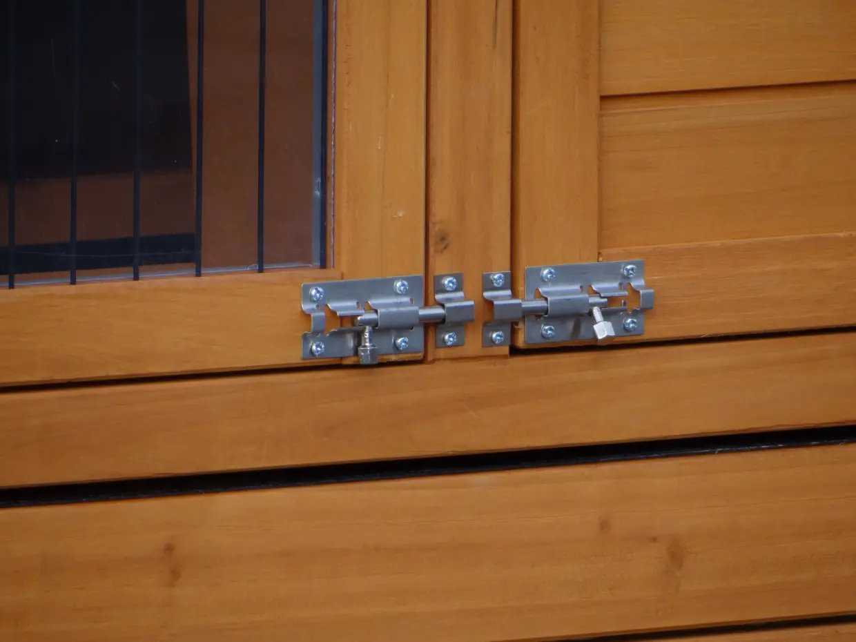 Il est conseillé de traiter périodiquement les charnières et les serrures avec un spray en silicone ou un spray pour serrures pour éviter la rouille et la corrosion. Si l'animal n'est pas dans un endroit abrité, nous vous conseillons d'ancrer l'enclos.