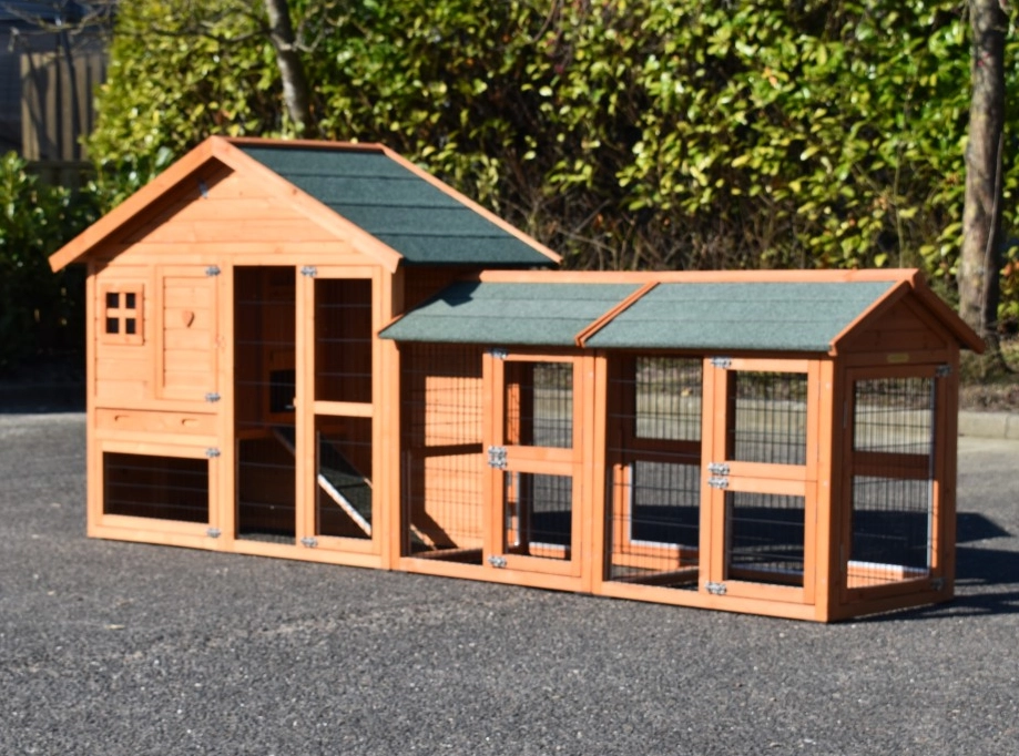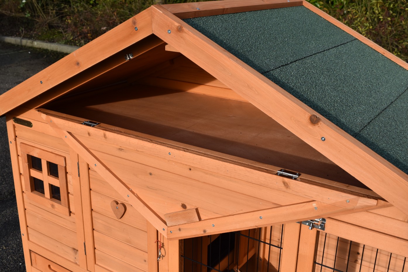 Le clapier pour lapin Holiday Small est étendue avec 2 enclos Space et est équipée avec anti-mordillage. Le clapier a grande portes avec fermetures doubles et a pieds en caoutchouc. Le clapier est équipée avec une tiroir, pour un nettoyage facile, et a une grenier de stockage pratique. Le toit est équipée avec toit bitumé vert.