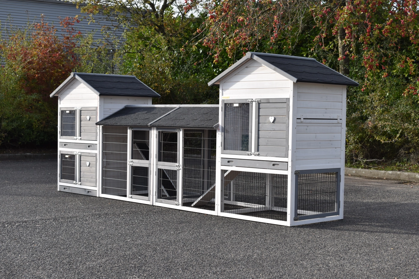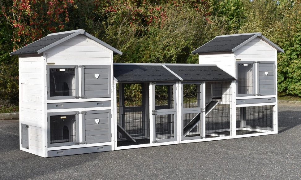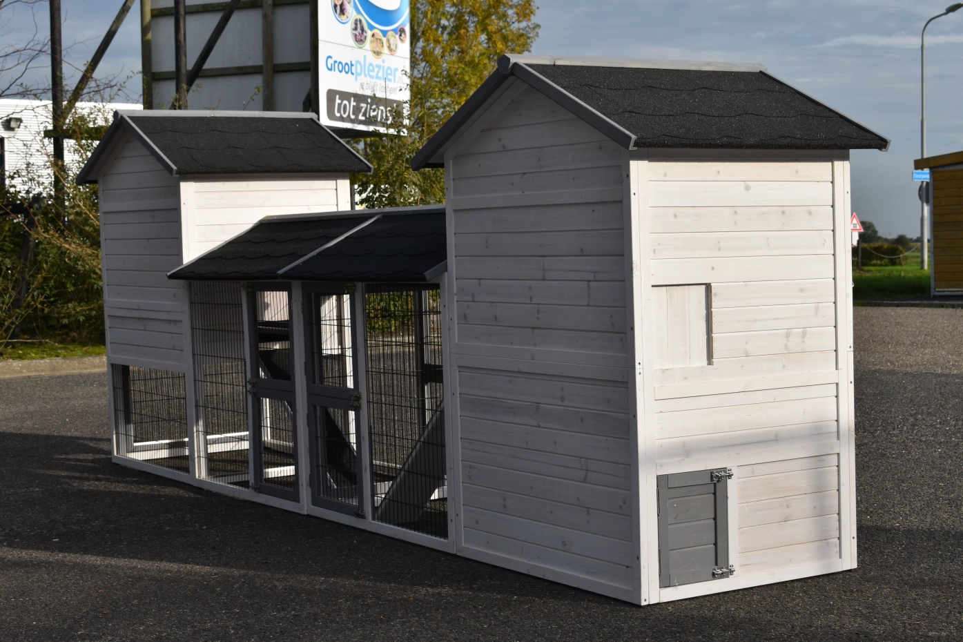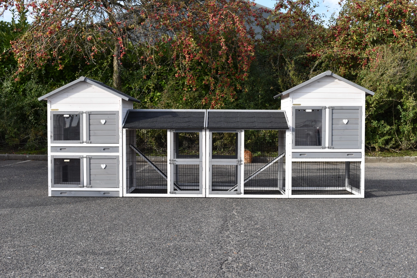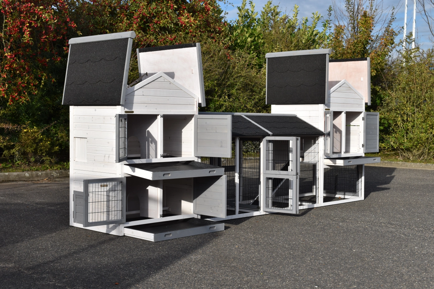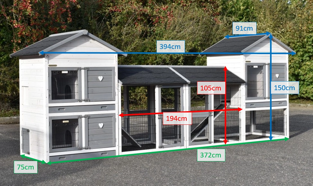Le clapier pour lapin Prestige Medium est un bel clapier avec anti-mordillage, grande portes et pieds en caoutchouc. Le clapier a un grand abri de nuit et un grand enclos. Les max. dimensions ont 394x90x150cm. Avec un petit ajustement, vous pouvez construire le clapier en image-miroir.