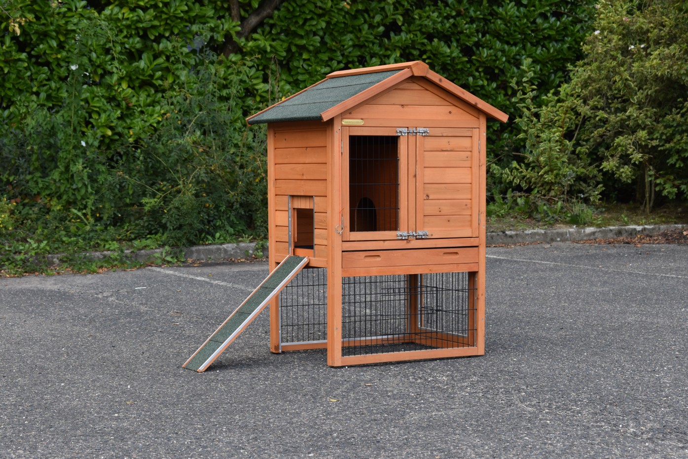 Le clapier pour lapin Prestige Small est un module de clapier extensible. Une maison fantastique pour vos lapins. Finition avec des bords en aluminium dans les zones les plus sensibles pour que vos lapins ne puissent pas grignoter le bois partout. Ce magnifique clapier est magnifiquement réalisé dans les moindres détails, avec des portes spacieuses et un espace de couchage spacieux. Cela rend le clapier Prestige Small très pratique à utiliser. Pour une protection optimale, le clapier repose sur des pieds en caoutchouc. Le clapier Prestige Small peut être agrandi avec, entre autres, des enclos supplémentaires. Vous pouvez également facilement assembler ce poulailler dans l'autre sens avec de légères modifications.