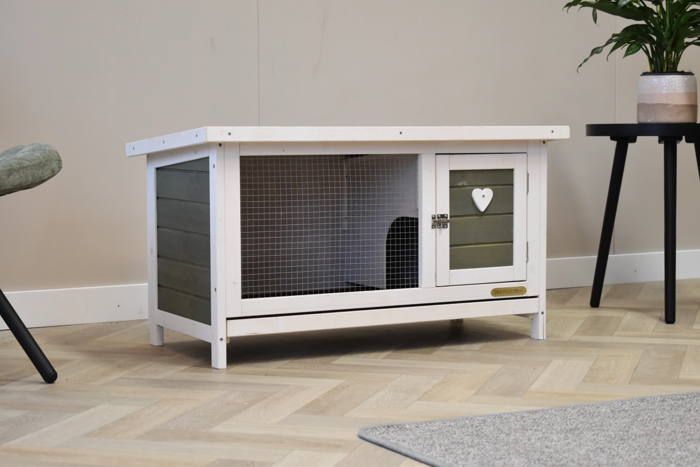 Le petit clapier Boemsy est équipée pour un petit lapin, et aussi pour un cochon d'inde. Le petit clapier est équipée avec un abri de nuit et une tiroir, pour un nettoyage facilement. Le clapier a petits pieds et est approprié pour 1 petit lapin.