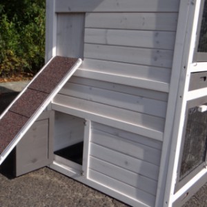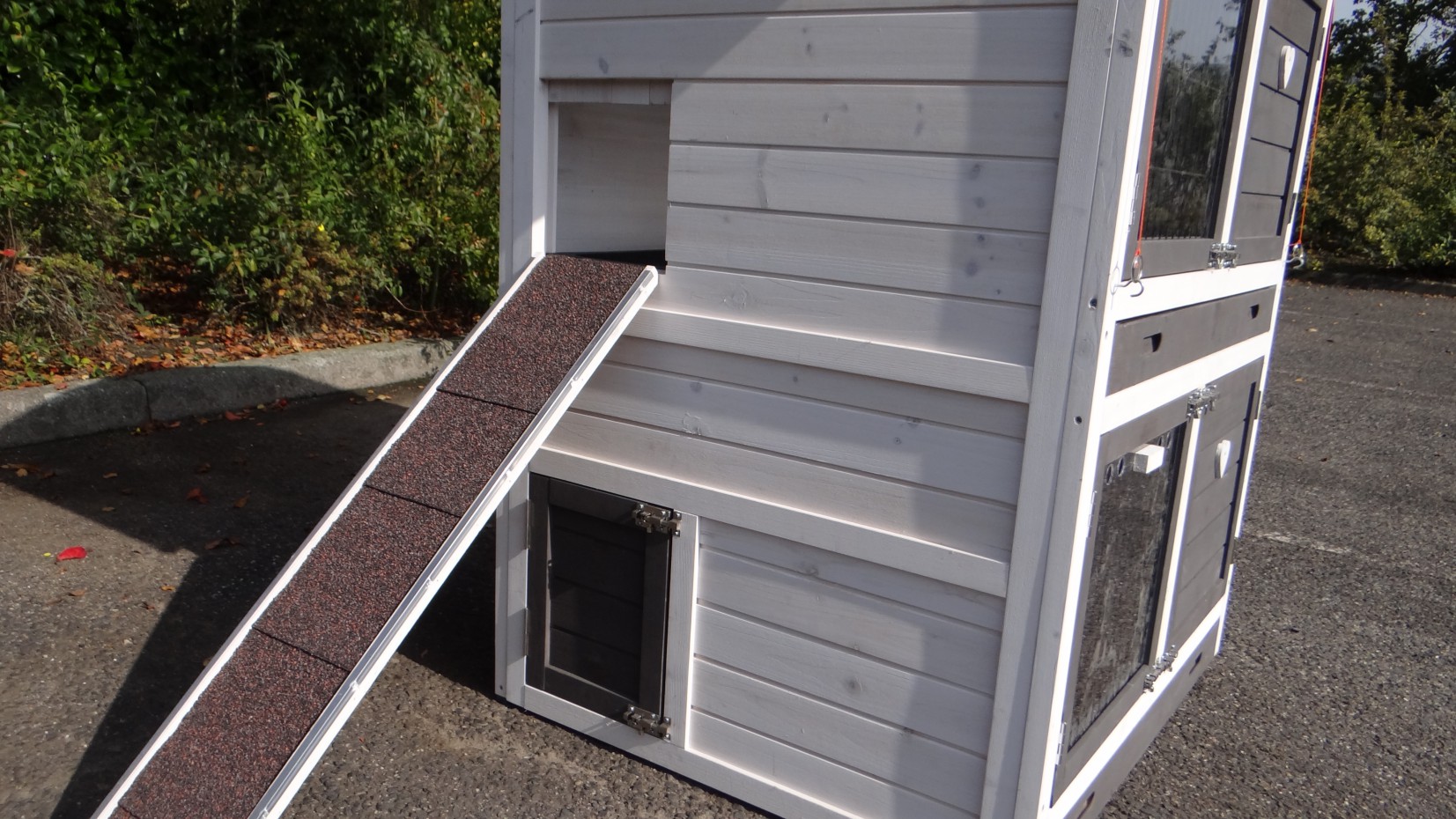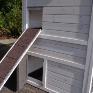 Le bois utilisé pour le loft est un produit naturel unique qu'a été produit dans le pays d'origine, après une sélection rigoureuse, dans une manière traditionelle. C'est caractéristique et unique à tous égards. Ce produit en bois a été un traitement manuel. Aucune pièce de bois ne possède la même forme, la même structure ou la même couleur, de sorte que les nuances de couleur sont inévitables, même dans un morceau de bois. Les fissures dues au vent, les craquelures, les imperfections et la présence de gros et de petits noeuds témoignent de leur origine et de leurs années de croissance. Les bosses sont généralement mises à jour manuellement avec du bois. Grâce à leur utilisation et à l’influence de la lumière, les nouveaux maisons pour animaux auront une couleur plus chaude au fil du temps. Les différences de couleur au modèle d'exposition sont donc possibles. L'enclos pour animaux est munie d'un fini antitache dans les couleurs comme sur la photo. Vous devez encore décaper le bois pour éviter les moisissures et la pourriture. Vous pouvez facilement commander des taches directement.