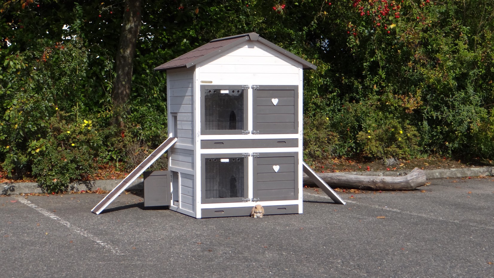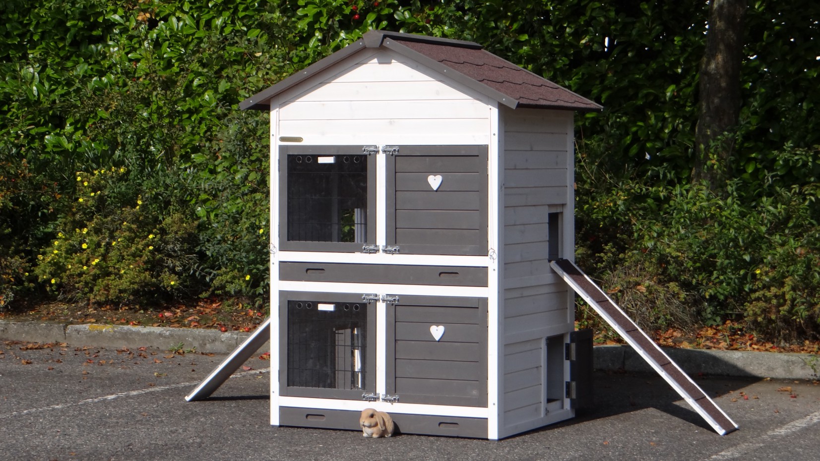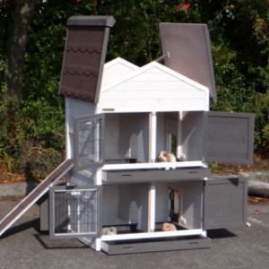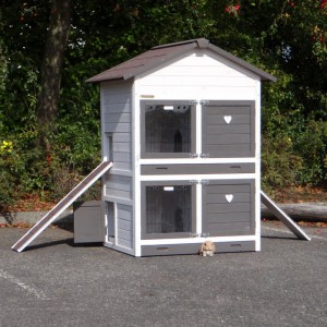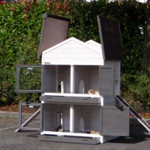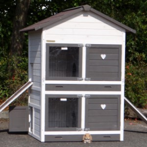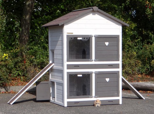 Ce clapier double est un clapier pour lapin très approprié si vous n'avez pas beaucoup de espace au jardin.