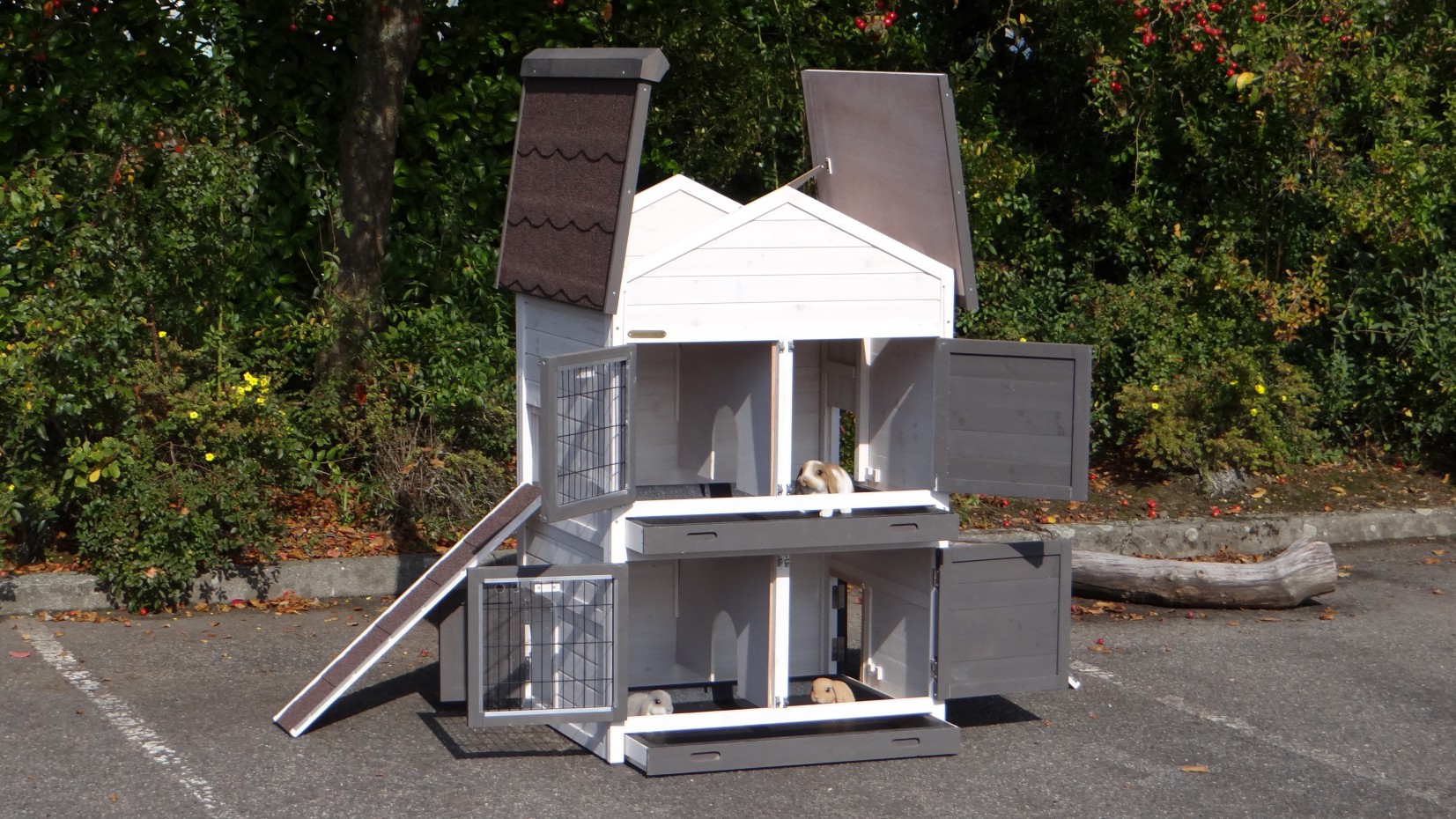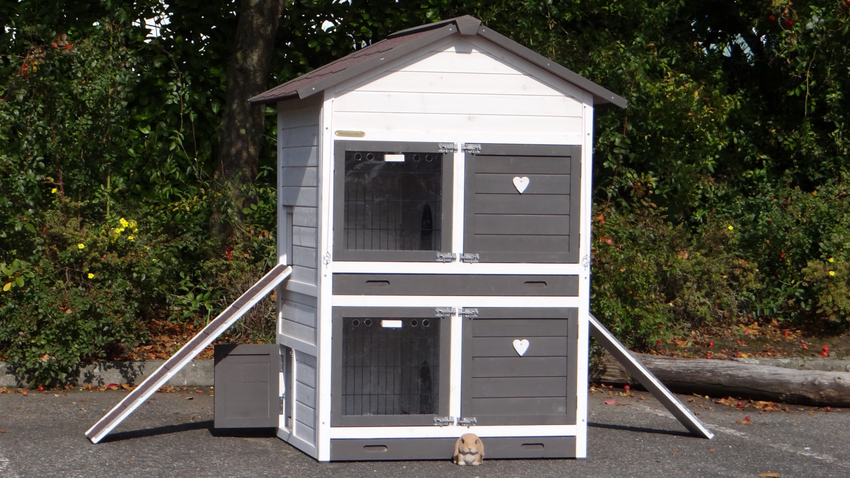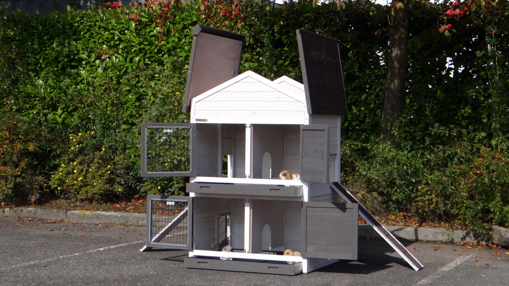 Ce clapier double est un clapier pour lapin très approprié si vous n'avez pas beaucoup de espace au jardin.