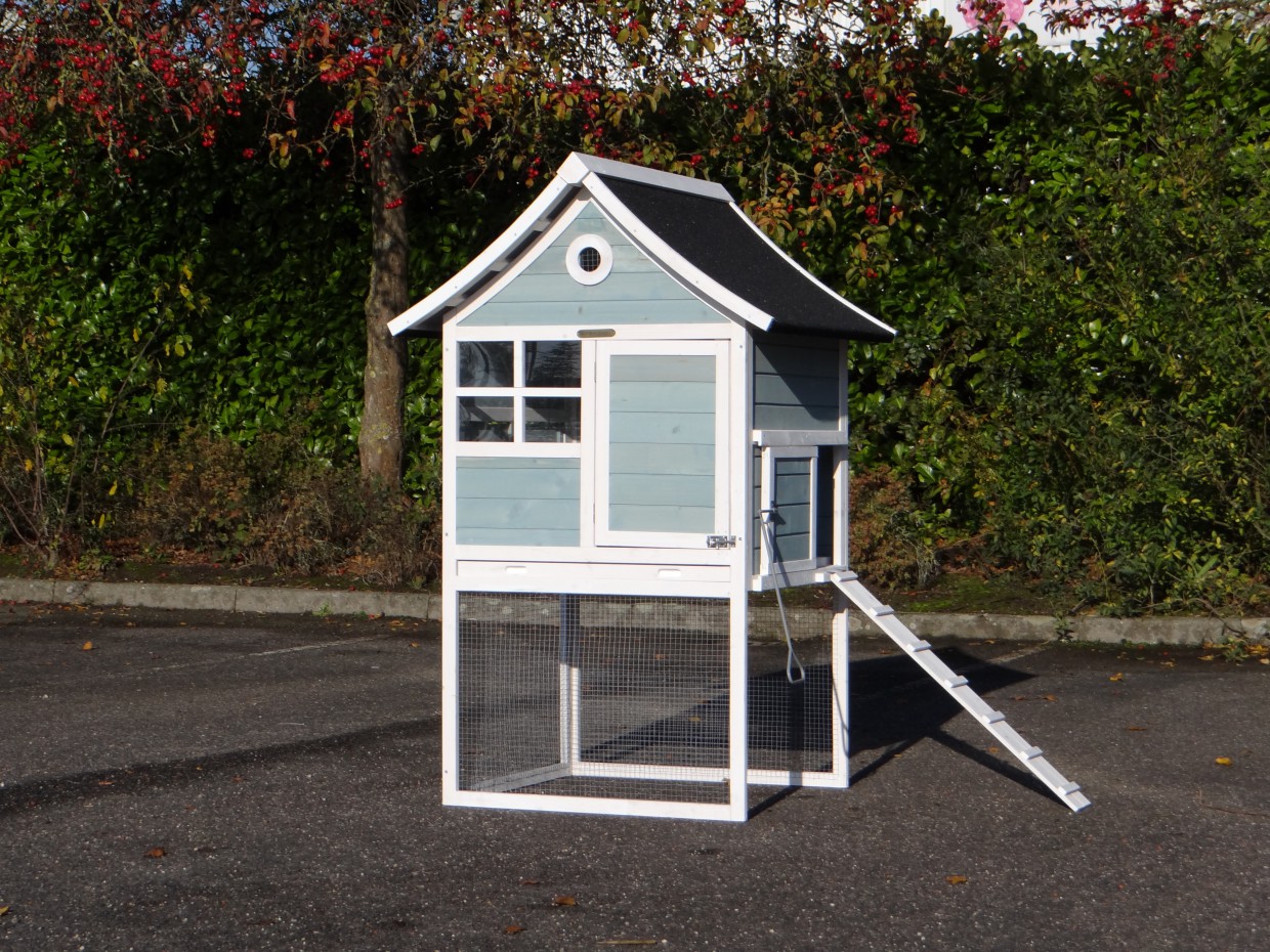 Le bois utilisé pour le loft est un produit naturel unique qu'a été produit dans le pays d'origine, après une sélection rigoureuse, dans une manière traditionelle. C'est caractéristique et unique à tous égards. Ce produit en bois a été un traitement manuel. Aucune pièce de bois ne possède la même forme, la même structure ou la même couleur, de sorte que les nuances de couleur sont inévitables, même dans un morceau de bois. Les fissures dues au vent, les craquelures, les imperfections et la présence de gros et de petits noeuds témoignent de leur origine et de leurs années de croissance. Les bosses sont généralement mises à jour manuellement avec du bois. Grâce à leur utilisation et à l’influence de la lumière, les nouveaux maisons pour animaux auront une couleur plus chaude au fil du temps. Les différences de couleur au modèle d'exposition sont donc possibles. L'enclos pour animaux est munie d'un fini antitache dans les couleurs comme sur la photo. Vous devez encore décaper le bois pour éviter les moisissures et la pourriture. Vous pouvez facilement commander des taches directement.