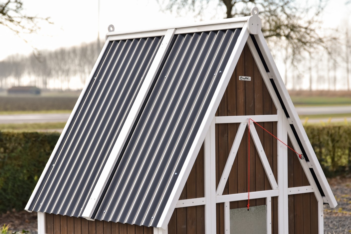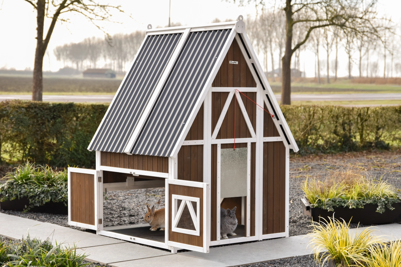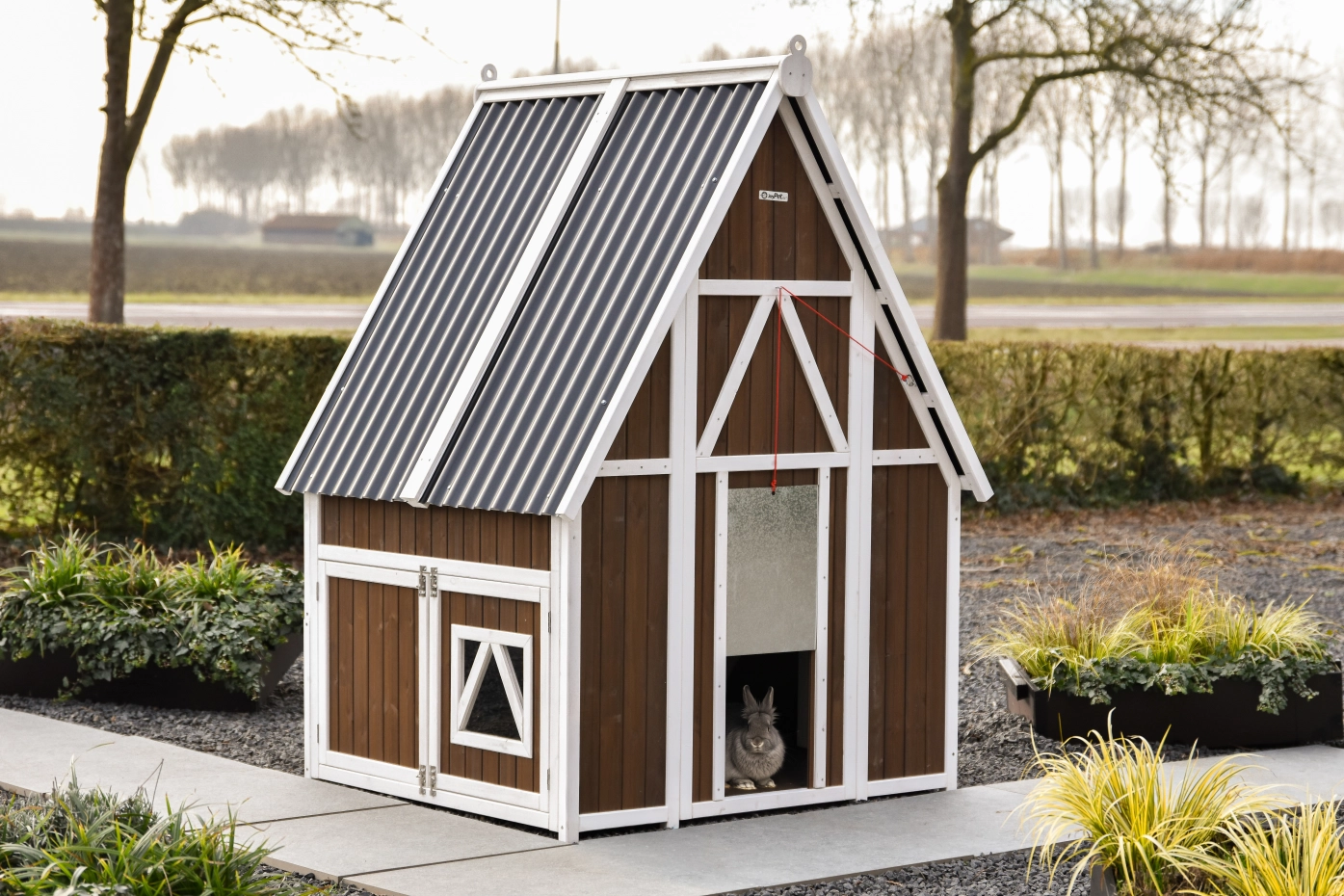Le clapier dispose d’un abri de nuit protégé et de portes pratiques pour un entretien et un nettoyage faciles. Grâce au solide volet coulissant, le clapier se ferme en toute sécurité. Le toit en plaques ondulées en plastique protège contre la pluie et les autres intempéries. Le design du Pip vous plaît ? Achetez-le dès maintenant !