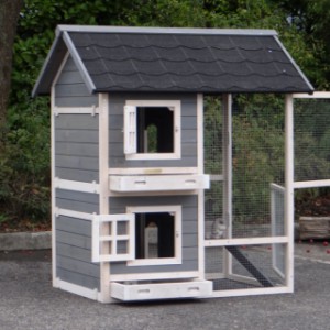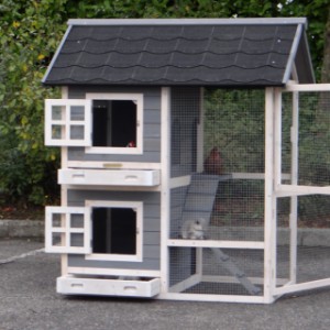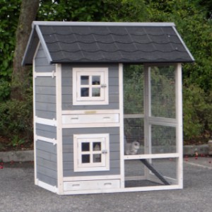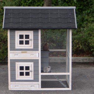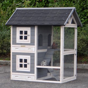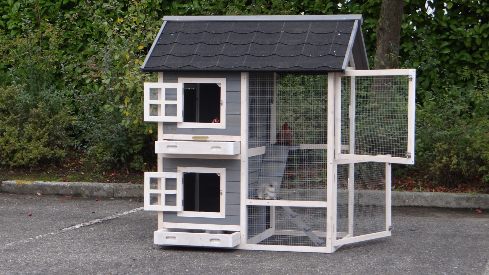 Le bois utilisé pour le loft est un produit naturel unique qu'a été produit dans le pays d'origine, après une sélection rigoureuse, dans une manière traditionelle. C'est caractéristique et unique à tous égards. Ce produit en bois a été un traitement manuel. Aucune pièce de bois ne possède la même forme, la même structure ou la même couleur, de sorte que les nuances de couleur sont inévitables, même dans un morceau de bois. Les fissures dues au vent, les craquelures, les imperfections et la présence de gros et de petits noeuds témoignent de leur origine et de leurs années de croissance. Les bosses sont généralement mises à jour manuellement avec du bois. Grâce à leur utilisation et à l’influence de la lumière, les nouveaux maisons pour animaux auront une couleur plus chaude au fil du temps. Les différences de couleur au modèle d'exposition sont donc possibles. L'enclos pour animaux est munie d'un fini antitache dans les couleurs comme sur la photo. Vous devez encore décaper le bois pour éviter les moisissures et la pourriture. Vous pouvez facilement commander des taches directement.