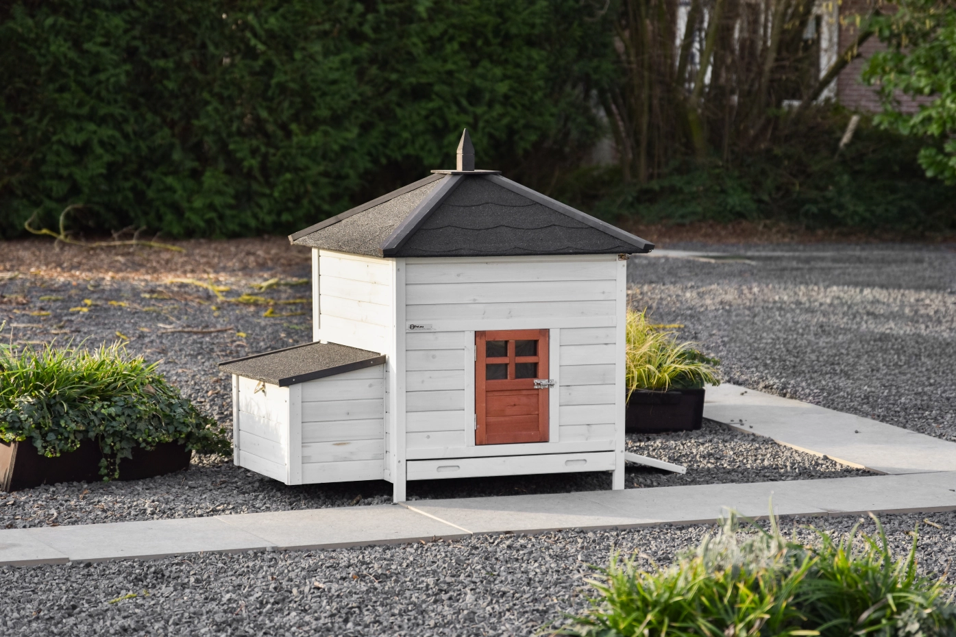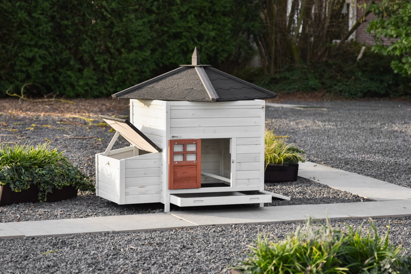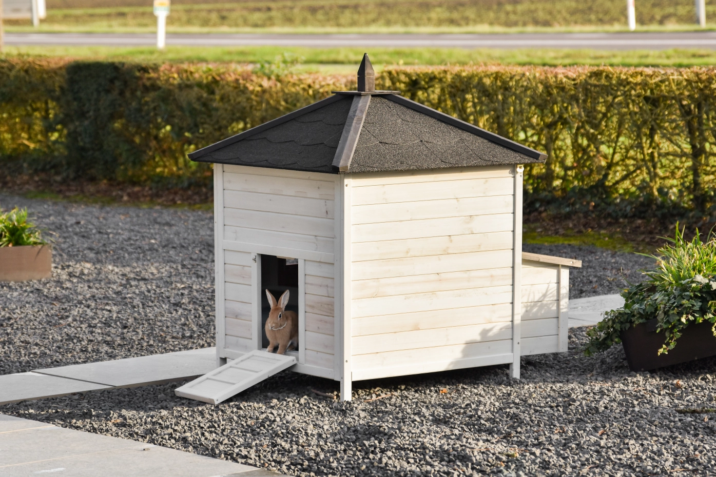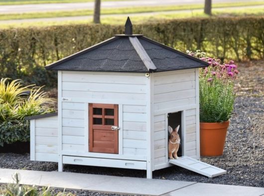 Ce clapier Ambiance Large est en réalité un poulailler, mais il convient très bien à l'hébergement de grands lapins tels que les lapins géants des Flandres et les lapins béliers français. Ce poulailler est équipé d'un nid. Veuillez noter que ce poulailler n'est pas équipé de bandes anti-mastication en aluminium, que vous pouvez acheter séparément.