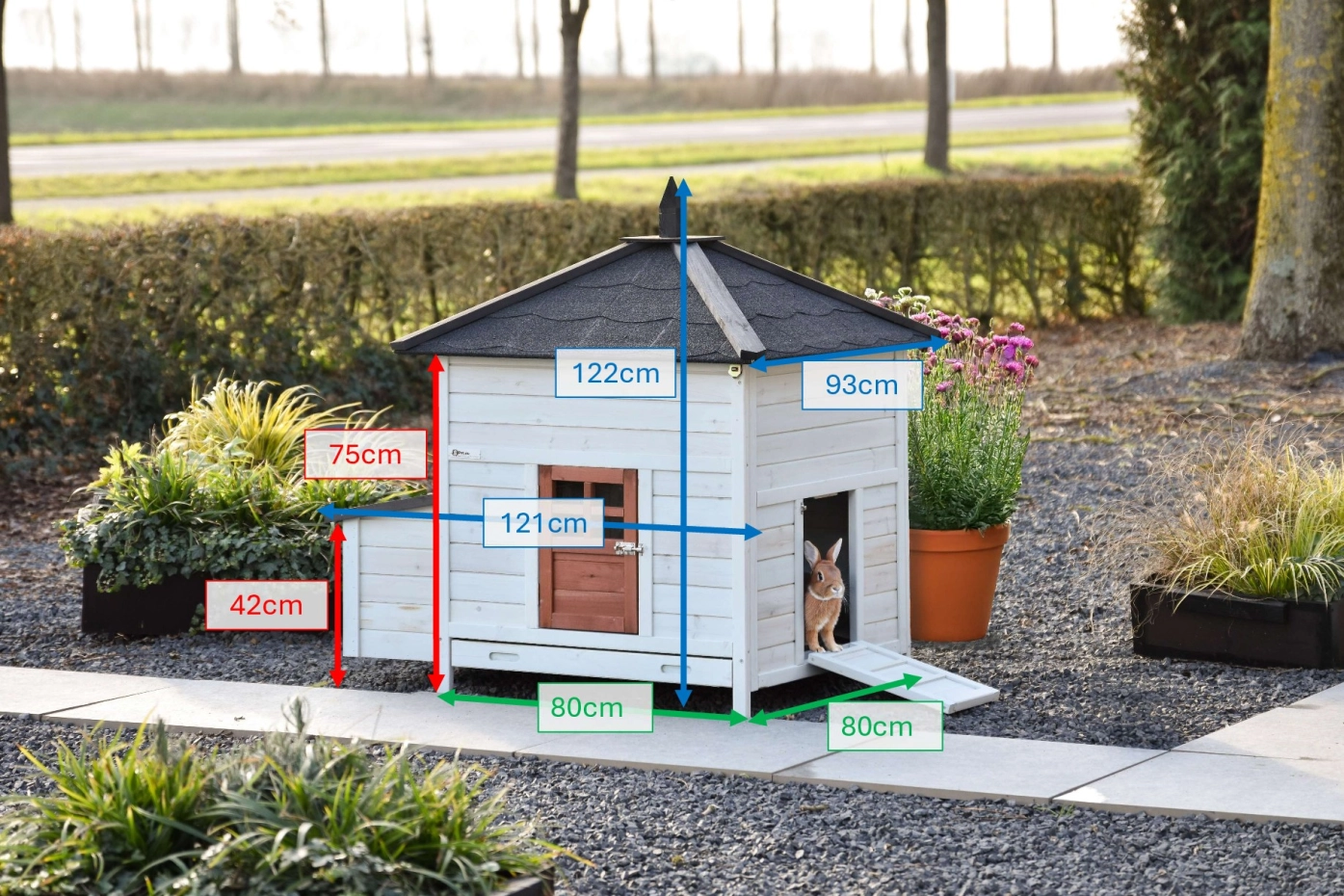 | Dimensions extérieures hors toit, incluant nichoir (LxP) | 110x80cm |