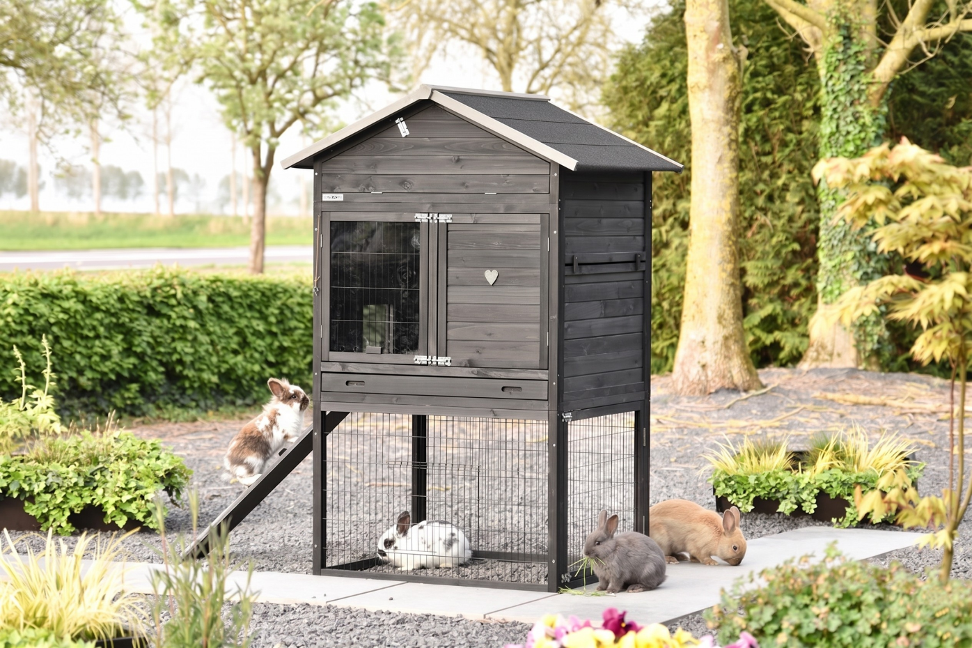 Un clapier spacieux et pratique dans lequel vos lapins se sentent immédiatement chez eux L’abri de nuit spacieux offre confort et tranquillité, tandis que les grandes portes facilitent l’entretien Cet abri de nuit compact est idéal pour être placé dans un grand enclos ou dans un pré, afin que vos lapins disposent de suffisamment d’espace pour se déplacer Grâce aux pieds en caoutchouc, le clapier est protégé contre l’humidité ascendante De plus, le clapier peut être facilement combiné avec des enclos existants pour plus d’espace, ce qui vous permet de l’agrandir à l’infini