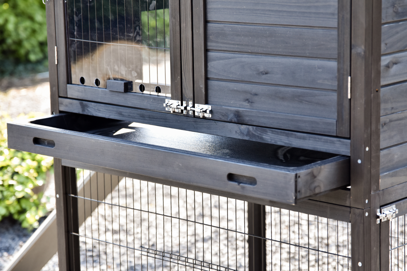Il est conseillé de traiter périodiquement les charnières et les serrures avec un spray en silicone ou un spray pour serrures pour éviter la rouille et la corrosion. Si l'animal n'est pas dans un endroit abrité, nous vous conseillons d'ancrer l'enclos.