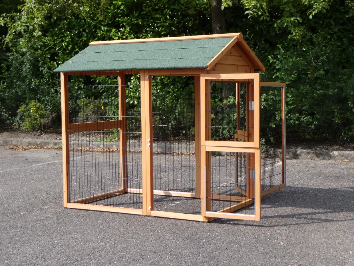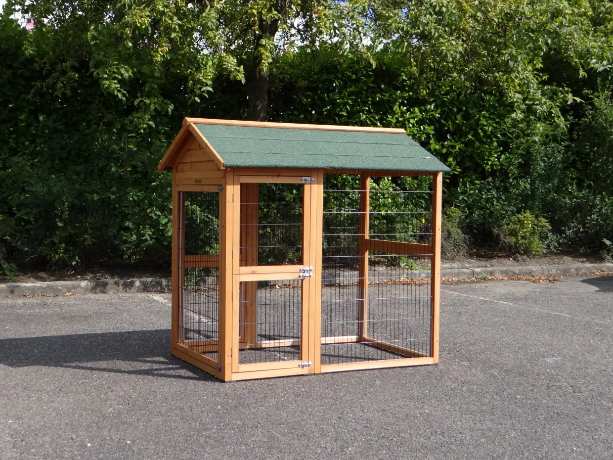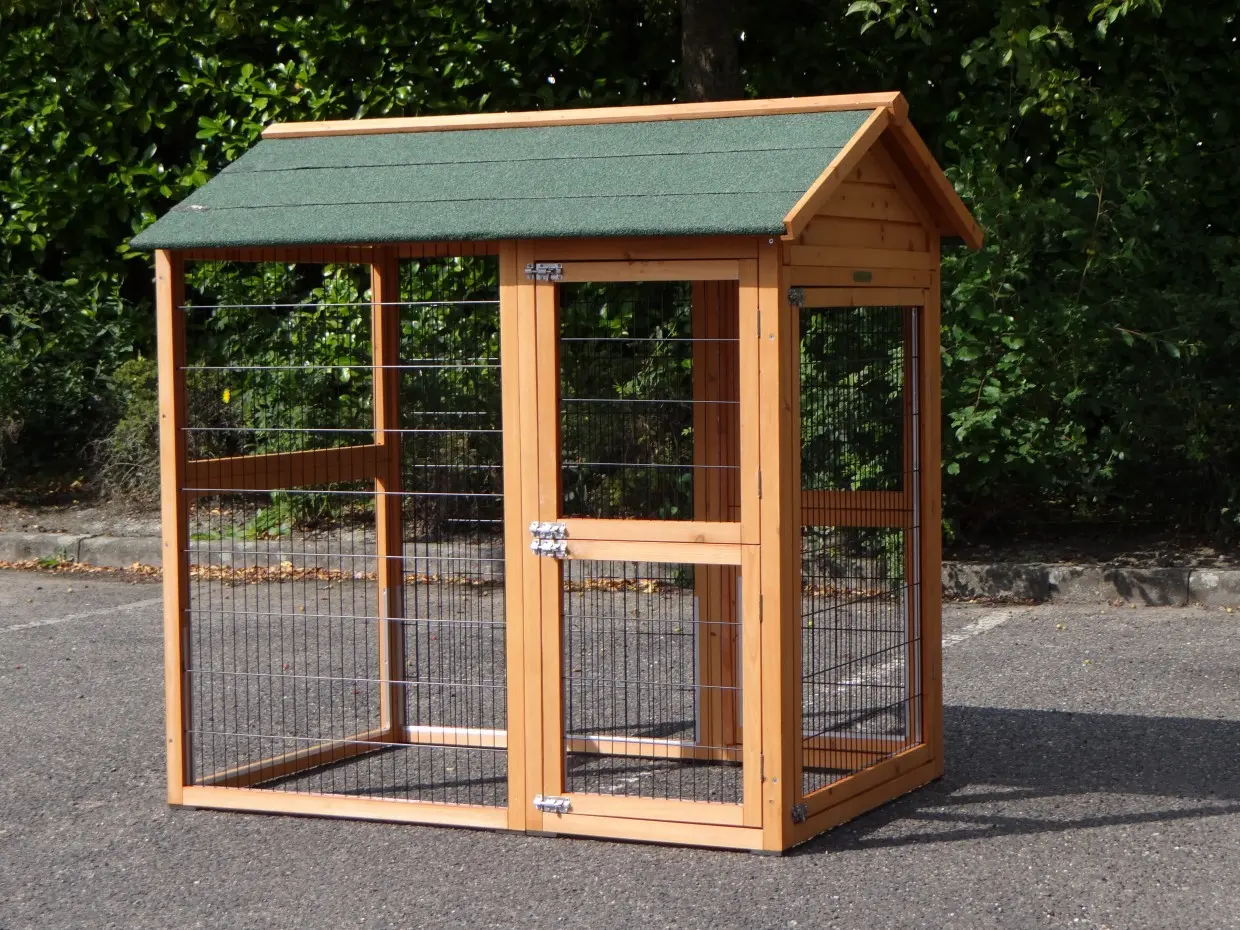 Cet enclos pour animaux est fabriqué à la main en bois de pin. Le bois de pin est un bois tendre particulièrement beau, apprécié depuis longtemps dans notre gamme des enclos d'animaux. En particulier, le grain du bois, le dessin à la flamme et les variations de couleur donnent à l'enclos de l'animal un aspect solide et chaleureux.