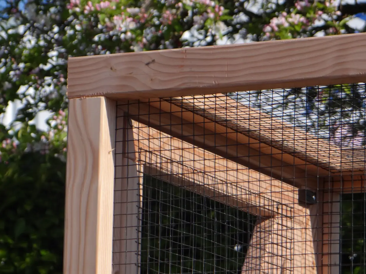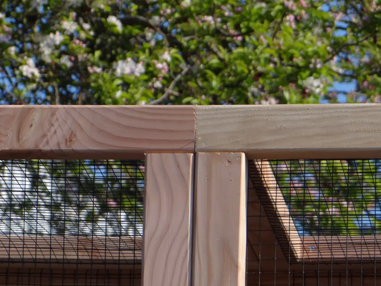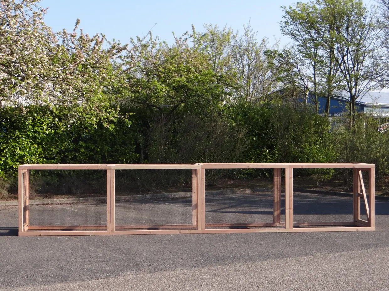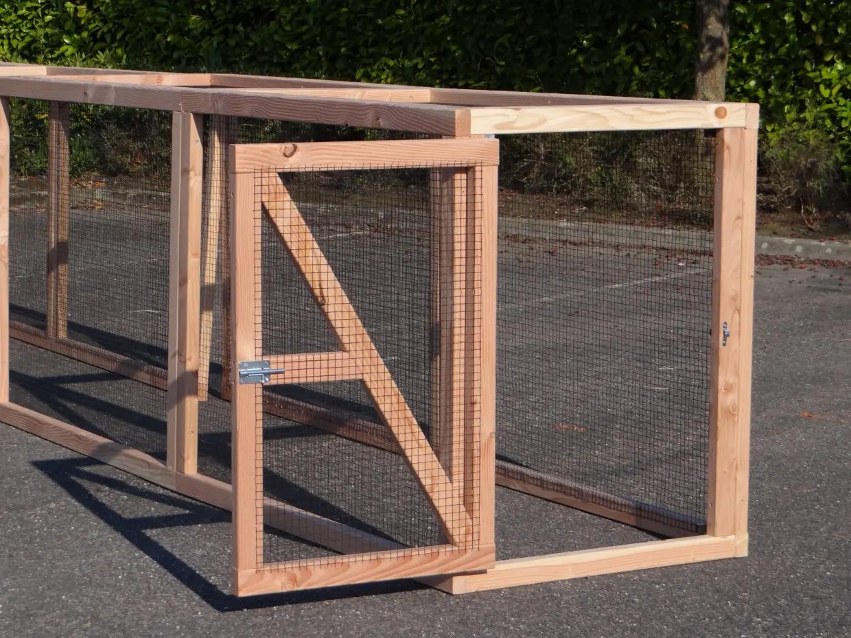 Cette grande enclos Hielke est idéale pour garder des poules, des lapins ou des chats. L'enclos Hielke est fabriquée en cadres en bois de douglas avec une grille noire. L'enclos a une superficie d'environ 7 m².
